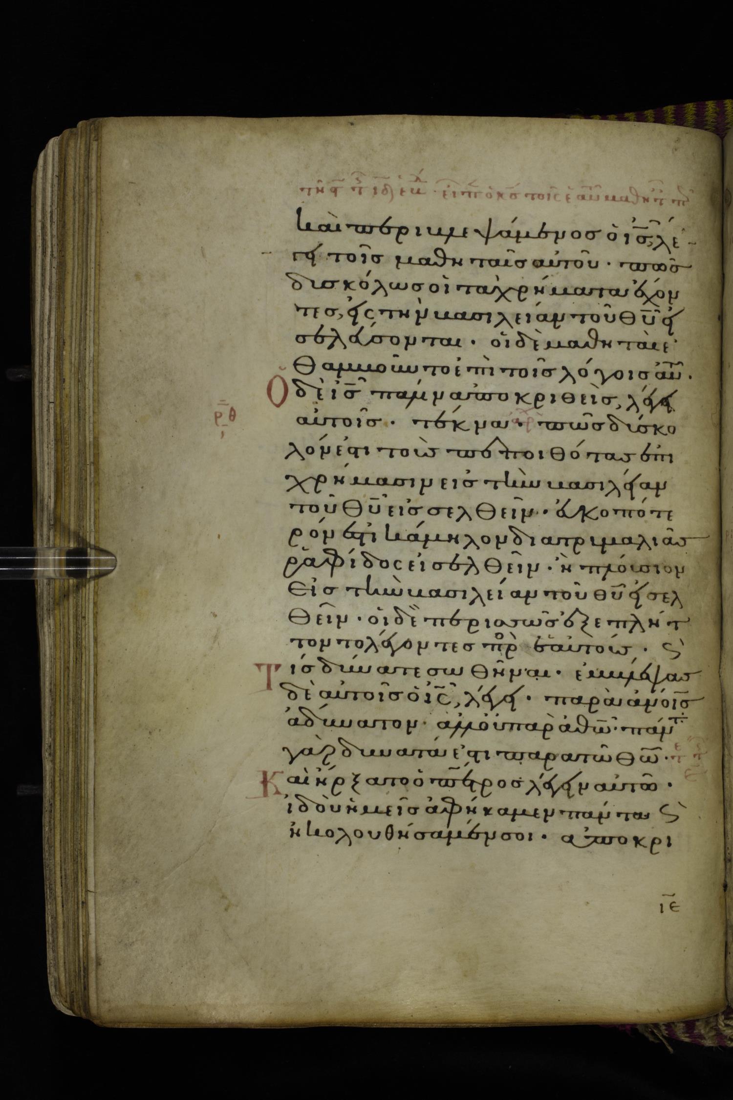 Fourteenth century minuscule (dated to 1321) of the Gospels on parchment; 290 leaves, 1 column, 21-23 lines per column. Images were taken at the National Library of Greece in Athens.