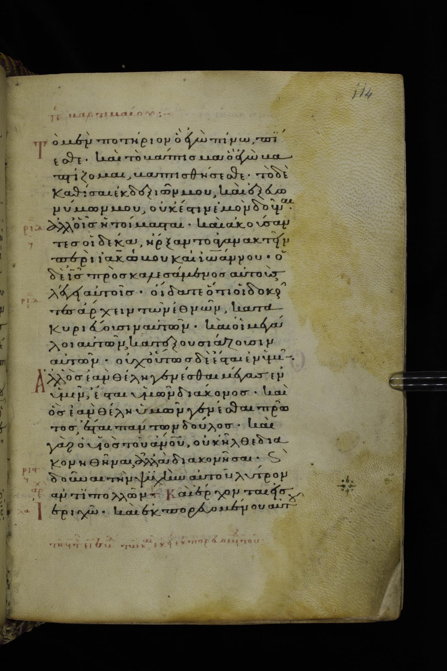 Fourteenth century minuscule (dated to 1321) of the Gospels on parchment; 290 leaves, 1 column, 21-23 lines per column. Images were taken at the National Library of Greece in Athens.