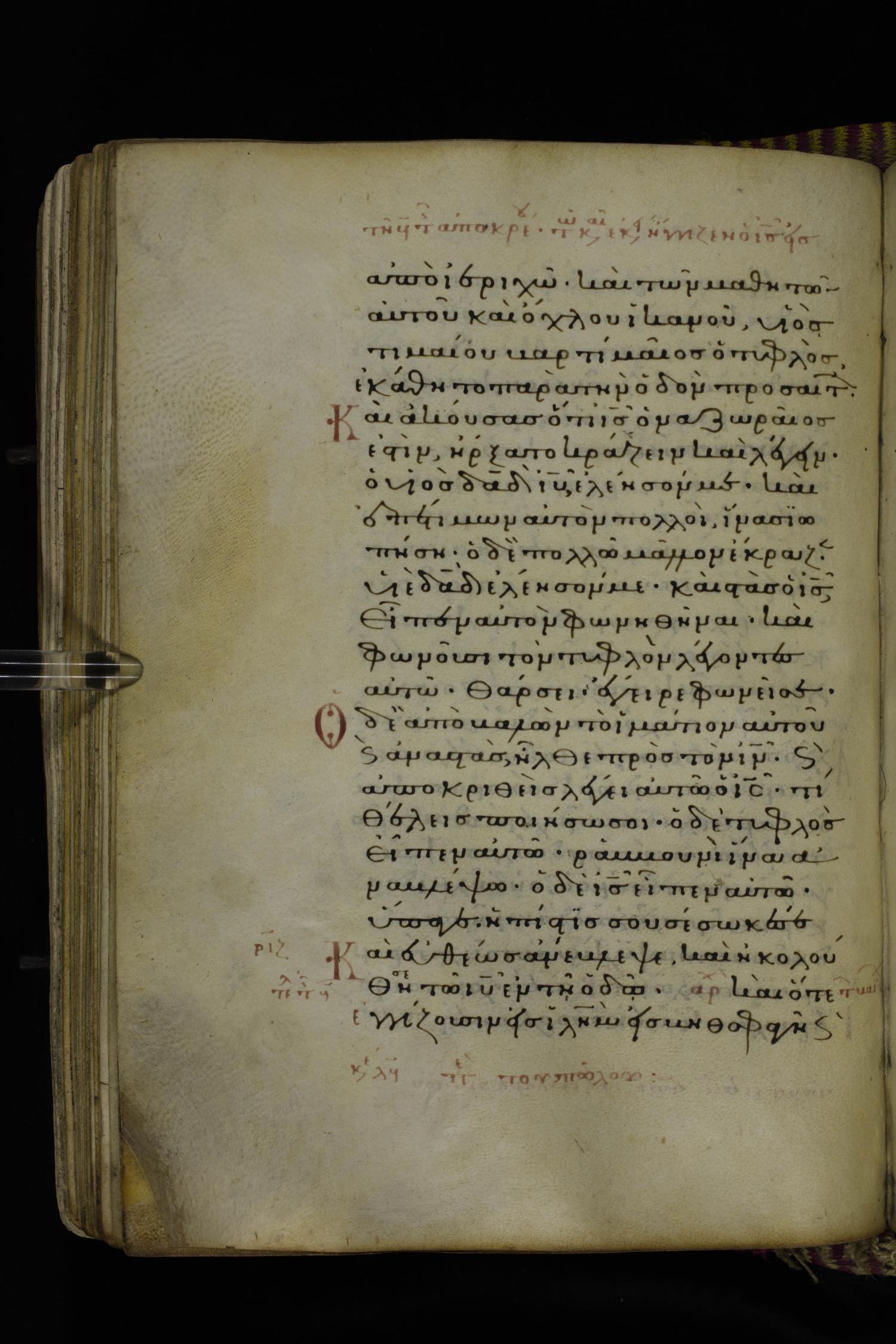 Fourteenth century minuscule (dated to 1321) of the Gospels on parchment; 290 leaves, 1 column, 21-23 lines per column. Images were taken at the National Library of Greece in Athens.