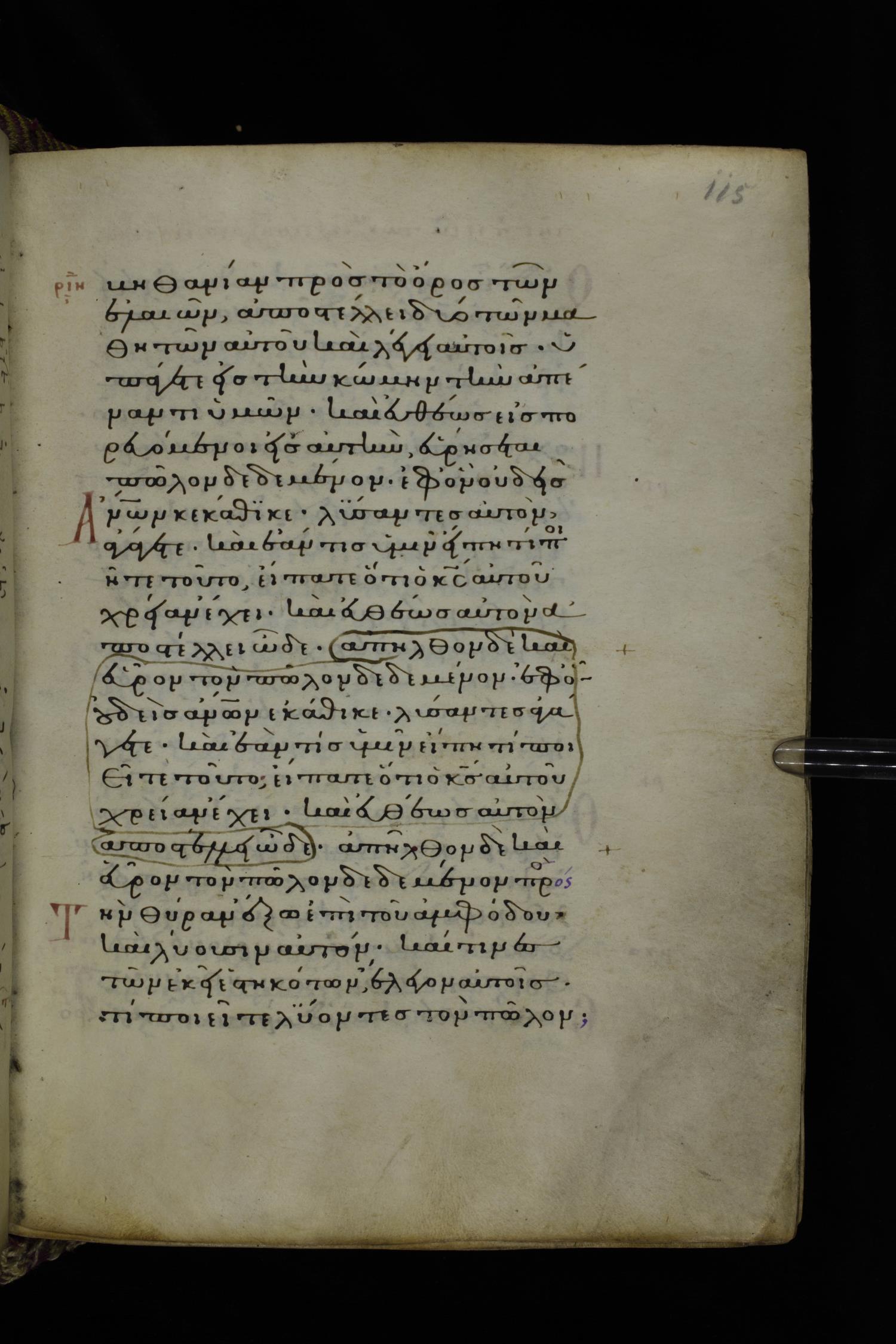 Fourteenth century minuscule (dated to 1321) of the Gospels on parchment; 290 leaves, 1 column, 21-23 lines per column. Images were taken at the National Library of Greece in Athens.
