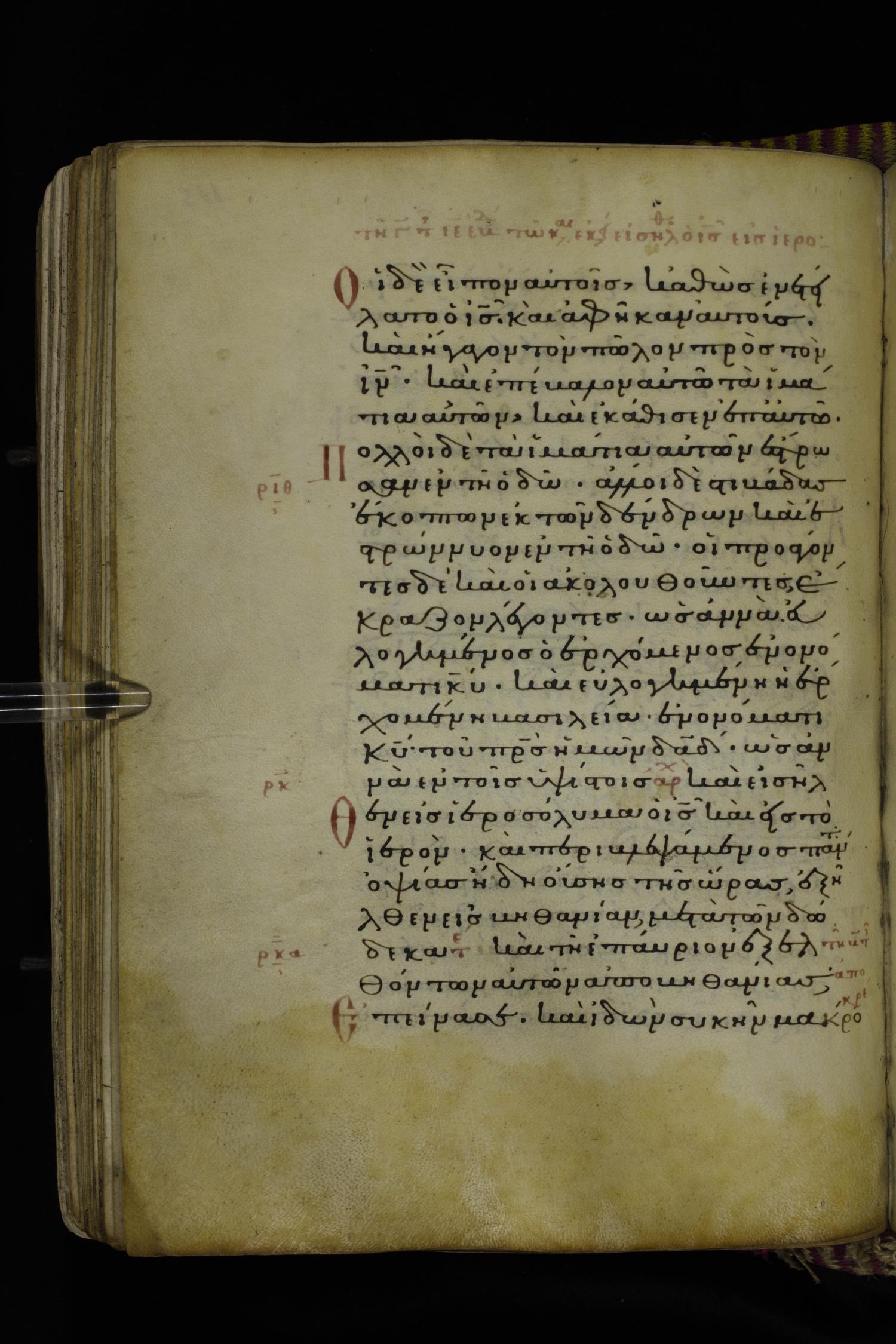 Fourteenth century minuscule (dated to 1321) of the Gospels on parchment; 290 leaves, 1 column, 21-23 lines per column. Images were taken at the National Library of Greece in Athens.