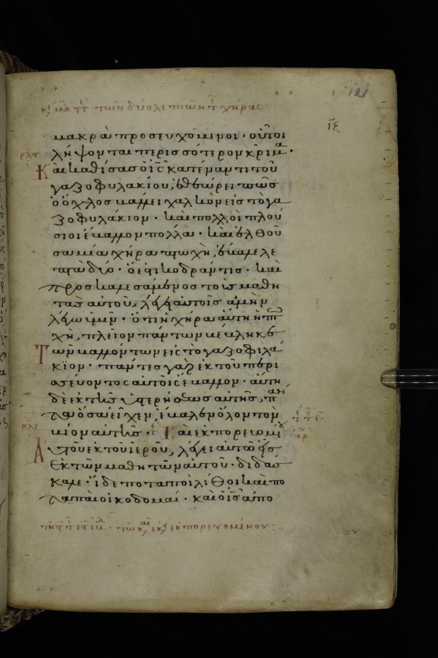 Fourteenth century minuscule (dated to 1321) of the Gospels on parchment; 290 leaves, 1 column, 21-23 lines per column. Images were taken at the National Library of Greece in Athens.