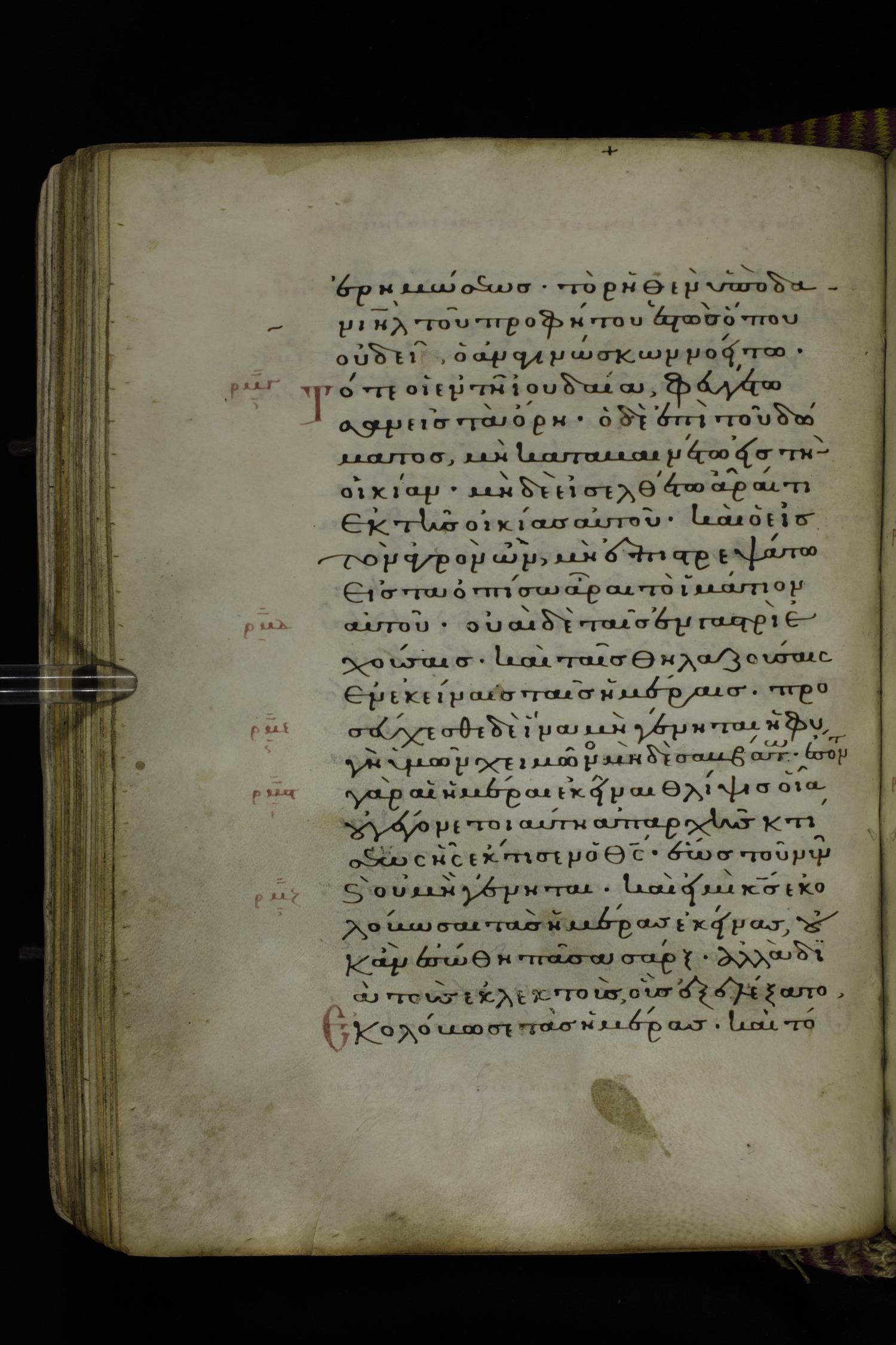 Fourteenth century minuscule (dated to 1321) of the Gospels on parchment; 290 leaves, 1 column, 21-23 lines per column. Images were taken at the National Library of Greece in Athens.
