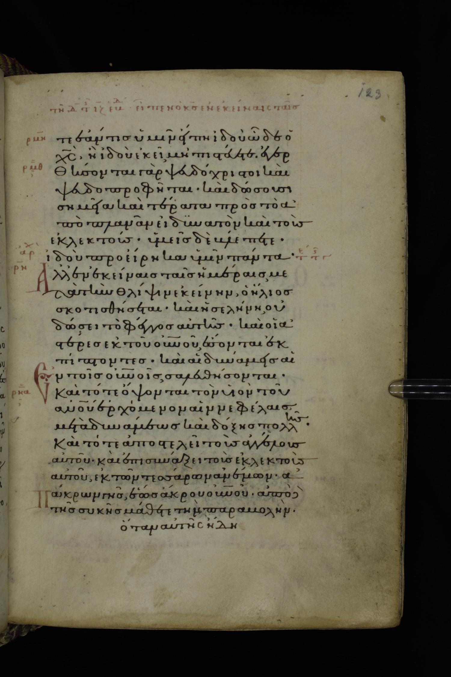 Fourteenth century minuscule (dated to 1321) of the Gospels on parchment; 290 leaves, 1 column, 21-23 lines per column. Images were taken at the National Library of Greece in Athens.