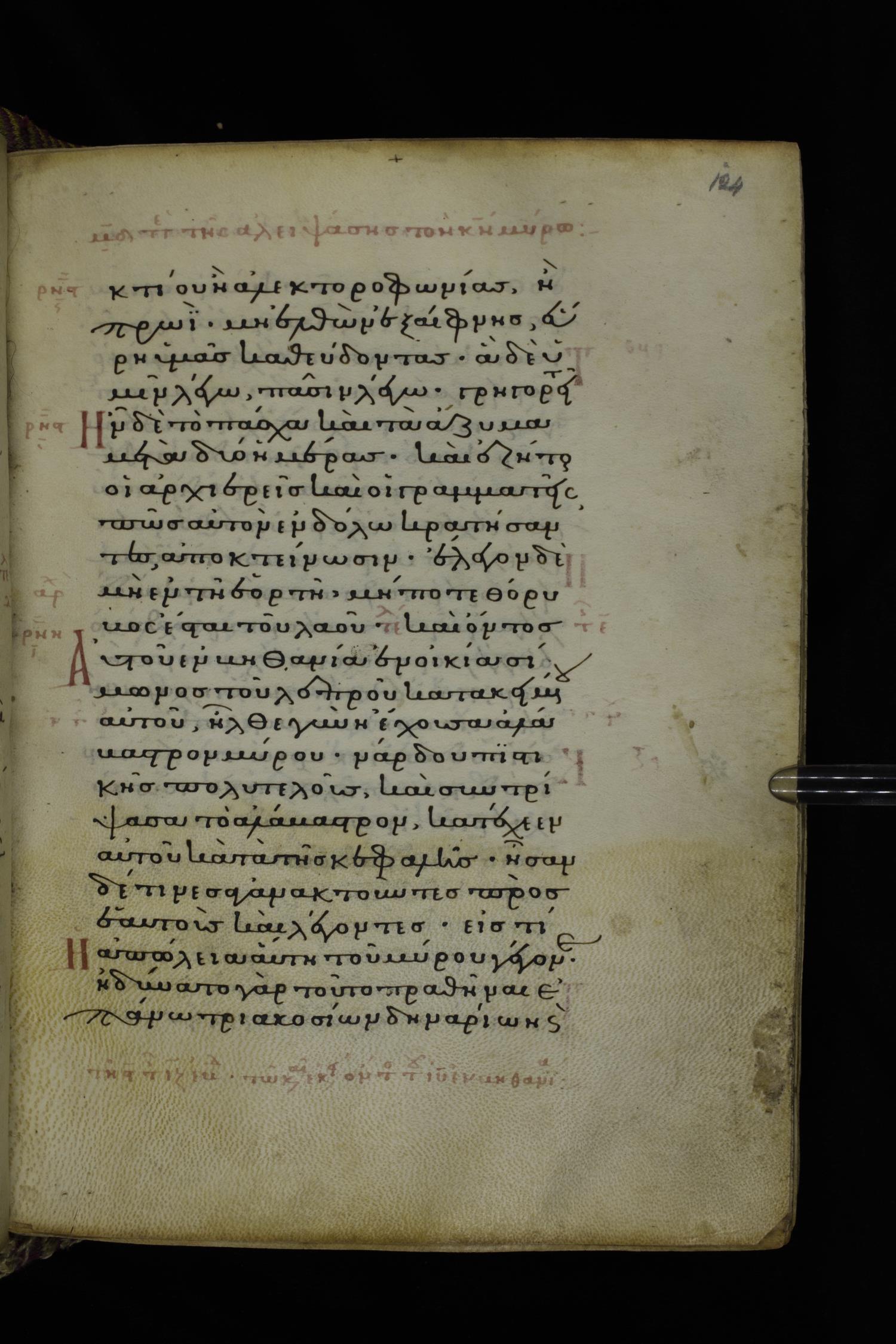 Fourteenth century minuscule (dated to 1321) of the Gospels on parchment; 290 leaves, 1 column, 21-23 lines per column. Images were taken at the National Library of Greece in Athens.