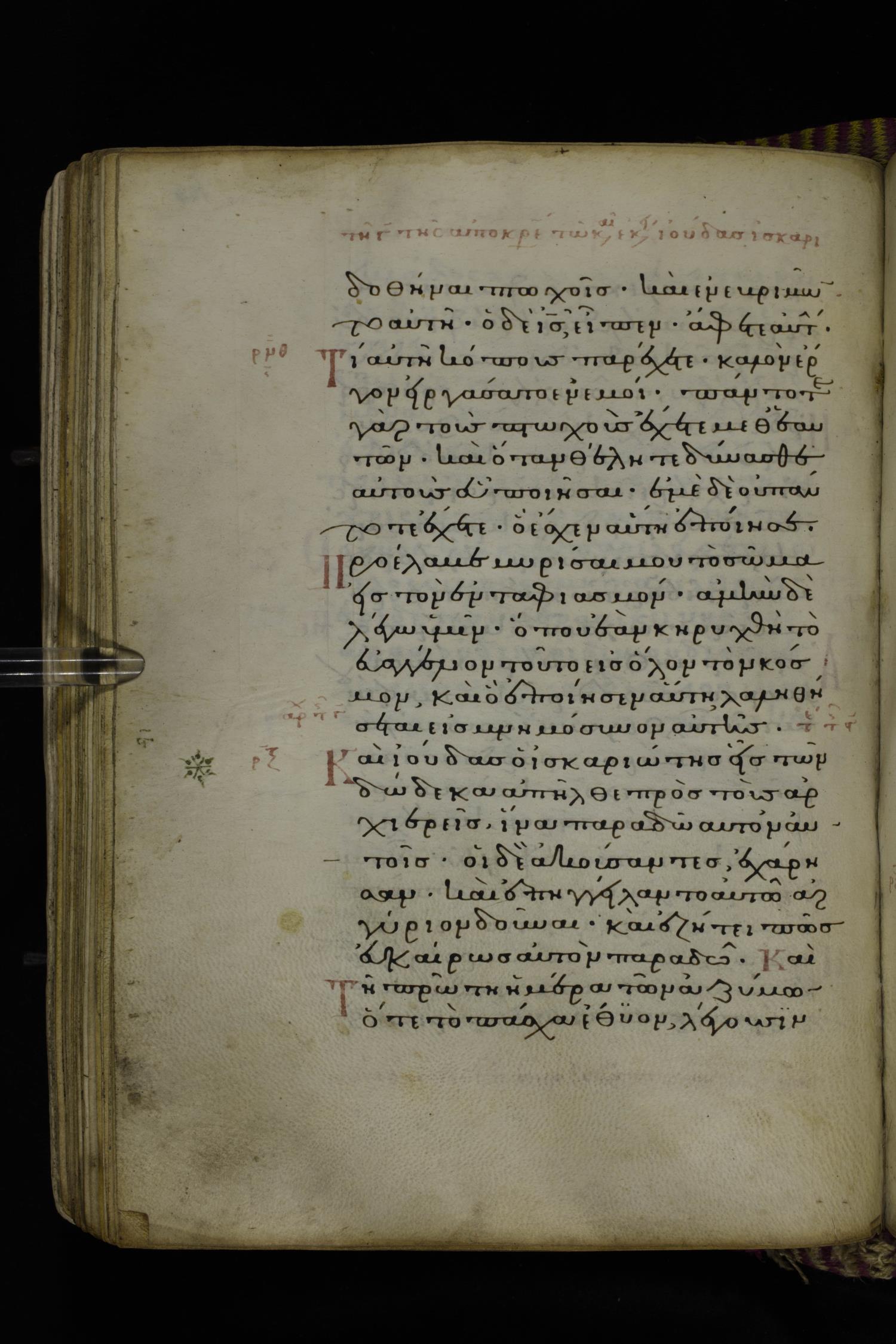 Fourteenth century minuscule (dated to 1321) of the Gospels on parchment; 290 leaves, 1 column, 21-23 lines per column. Images were taken at the National Library of Greece in Athens.