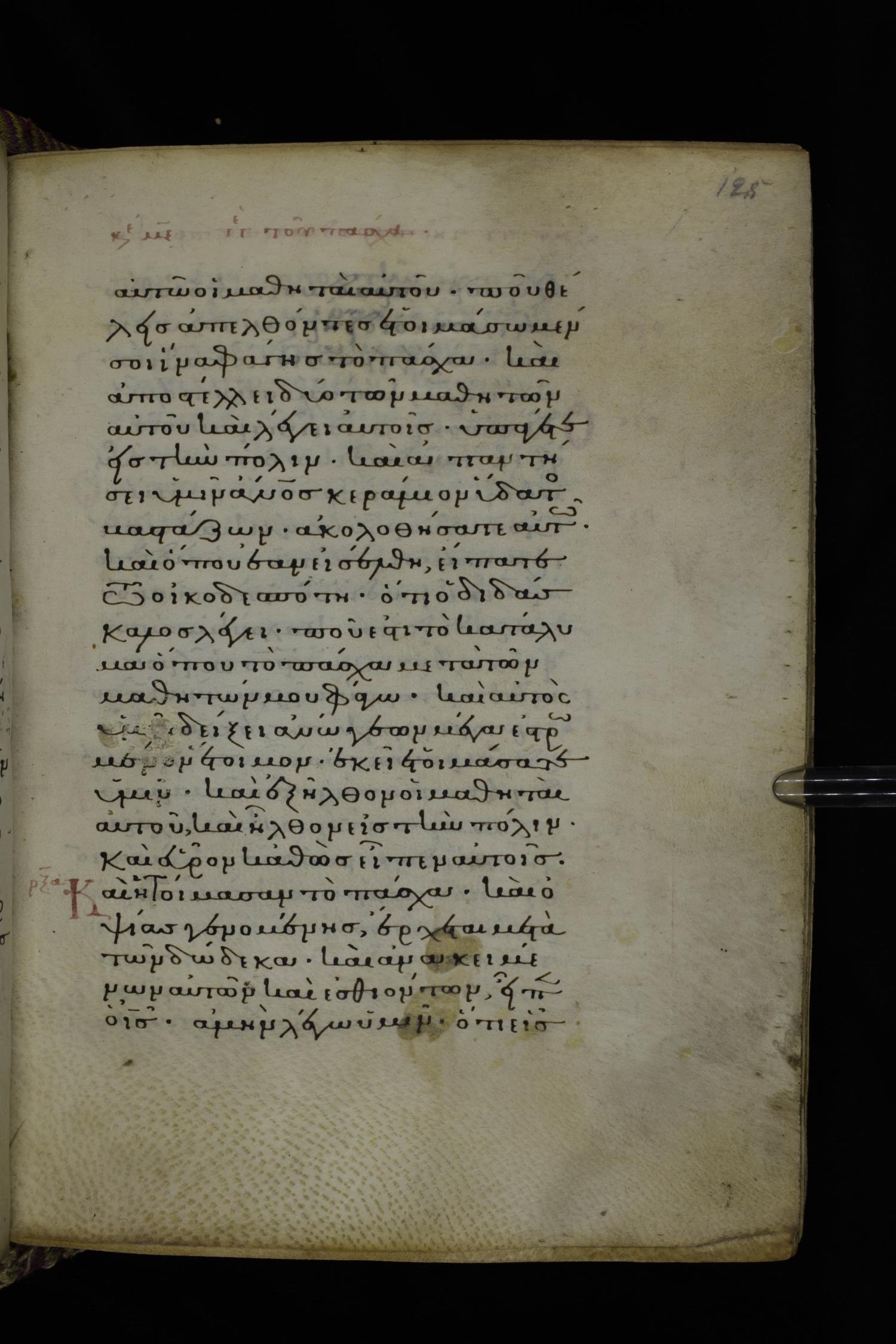 Fourteenth century minuscule (dated to 1321) of the Gospels on parchment; 290 leaves, 1 column, 21-23 lines per column. Images were taken at the National Library of Greece in Athens.