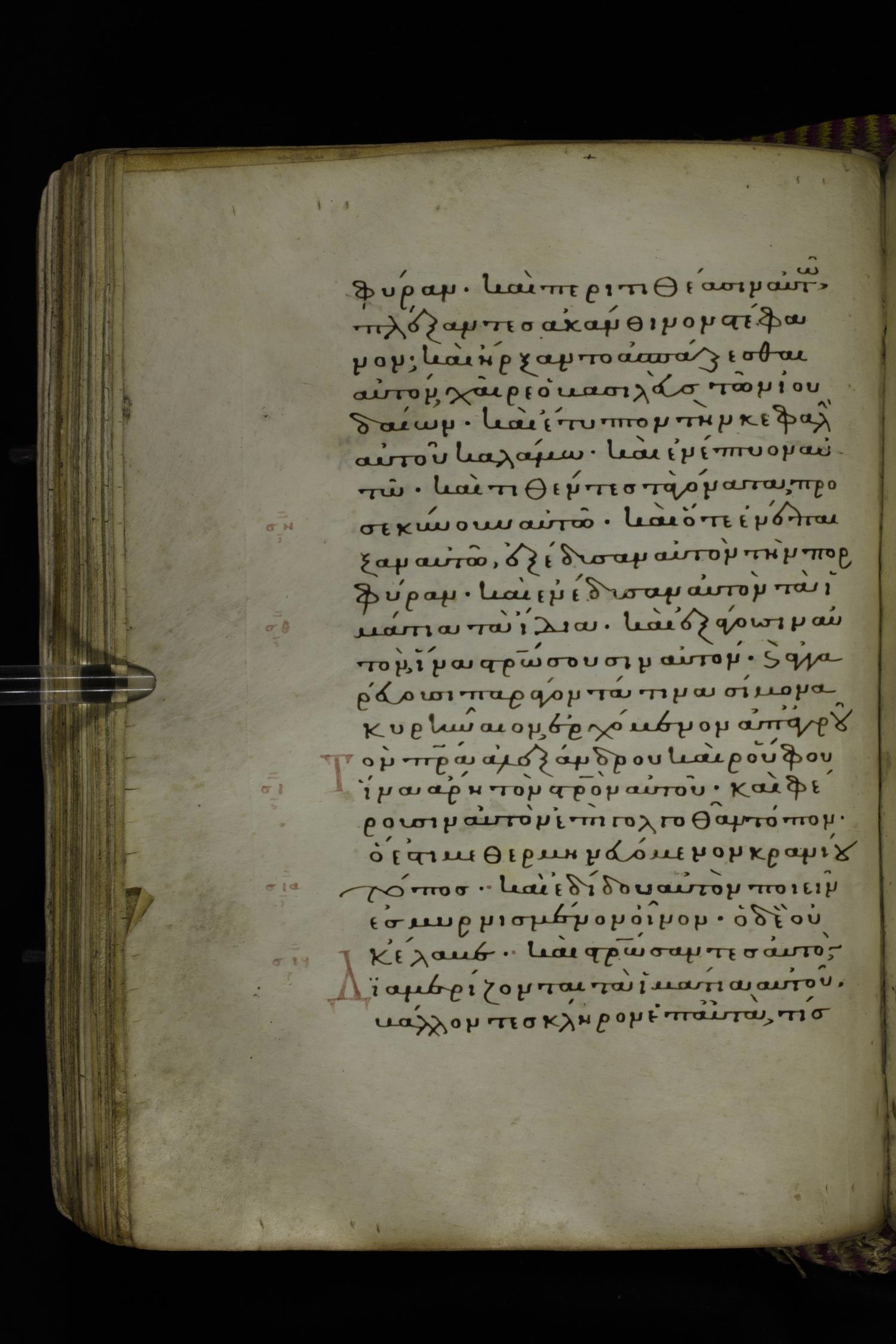 Fourteenth century minuscule (dated to 1321) of the Gospels on parchment; 290 leaves, 1 column, 21-23 lines per column. Images were taken at the National Library of Greece in Athens.
