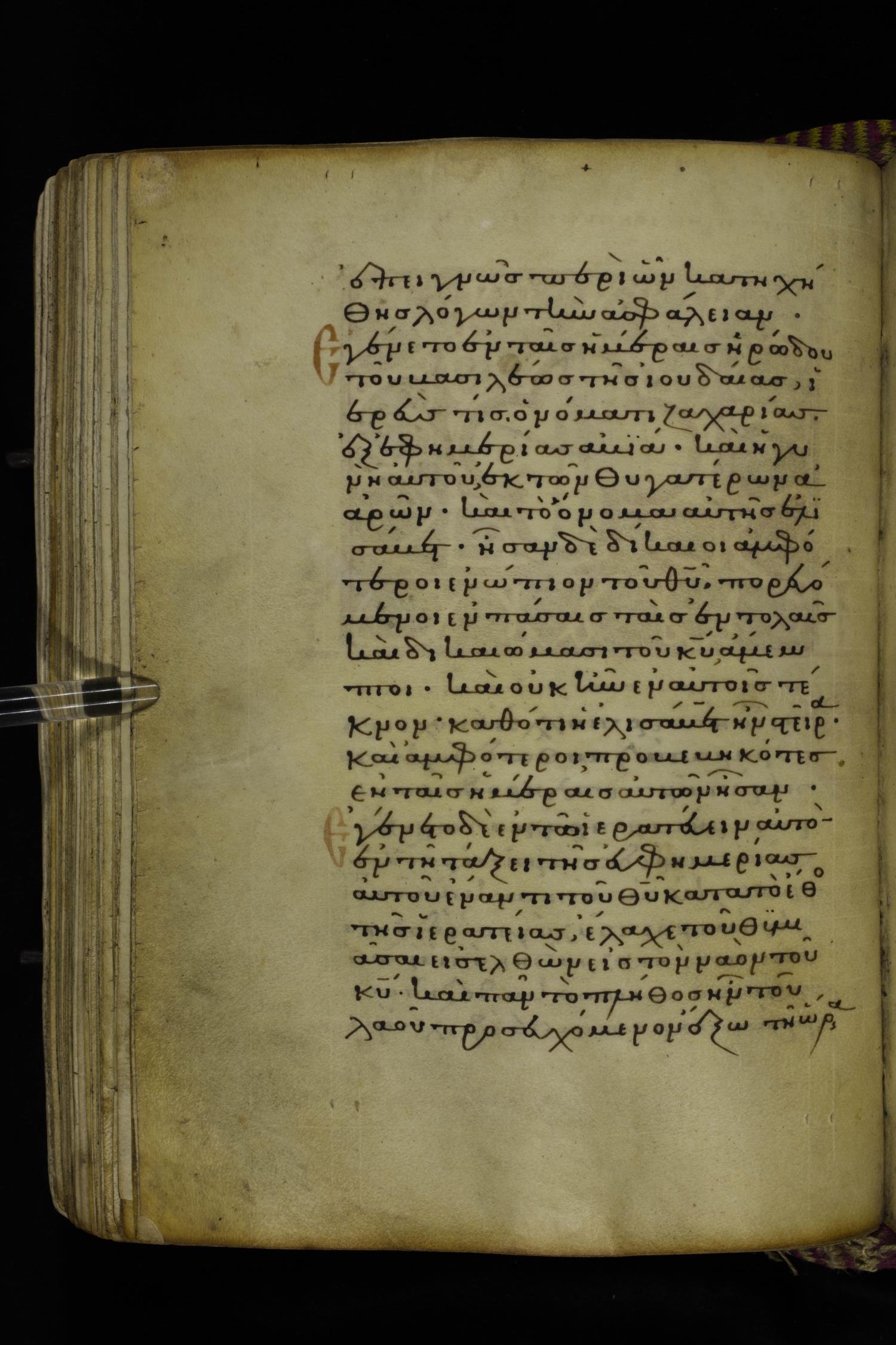 Fourteenth century minuscule (dated to 1321) of the Gospels on parchment; 290 leaves, 1 column, 21-23 lines per column. Images were taken at the National Library of Greece in Athens.