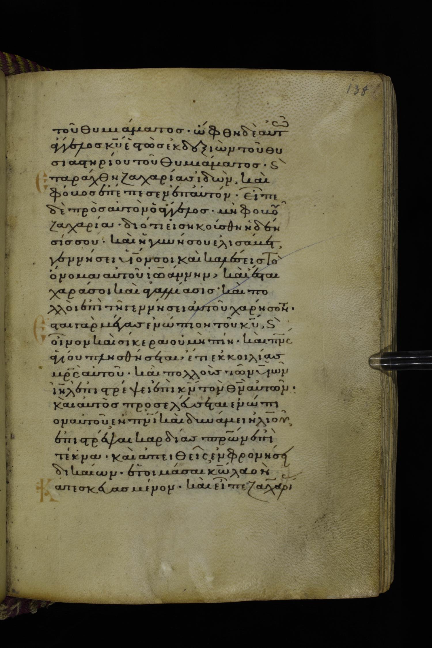 Fourteenth century minuscule (dated to 1321) of the Gospels on parchment; 290 leaves, 1 column, 21-23 lines per column. Images were taken at the National Library of Greece in Athens.