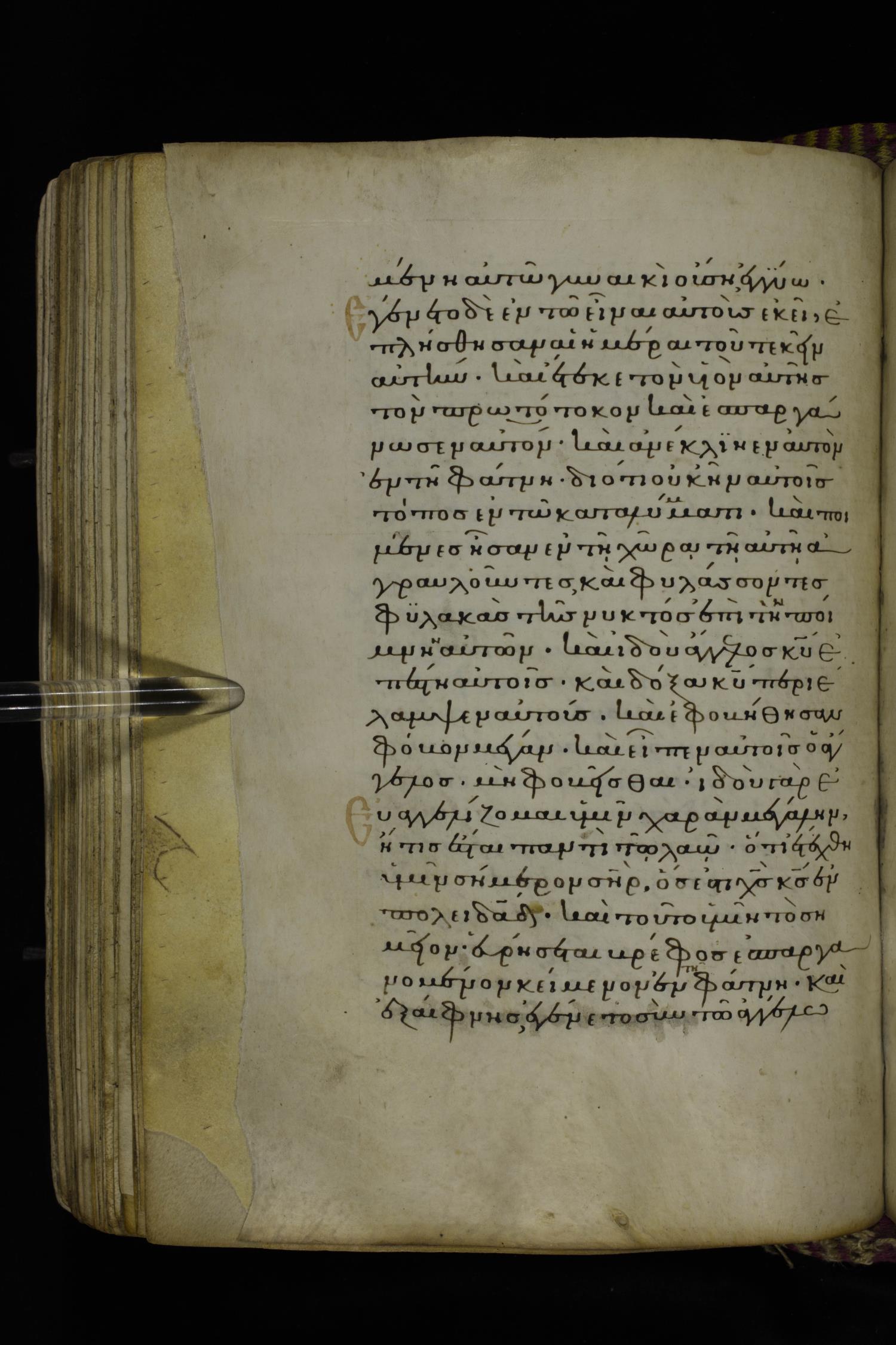 Fourteenth century minuscule (dated to 1321) of the Gospels on parchment; 290 leaves, 1 column, 21-23 lines per column. Images were taken at the National Library of Greece in Athens.