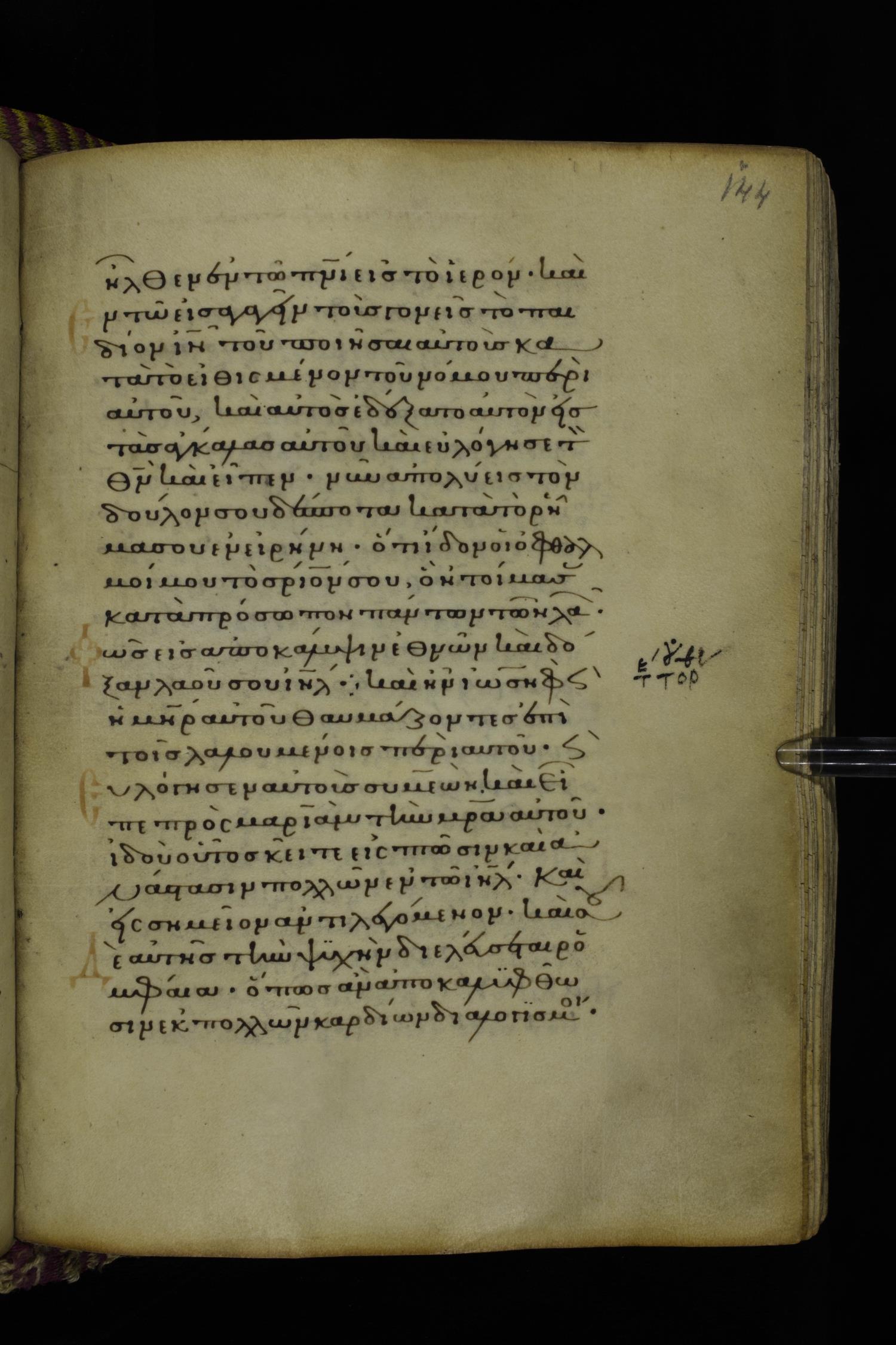 Fourteenth century minuscule (dated to 1321) of the Gospels on parchment; 290 leaves, 1 column, 21-23 lines per column. Images were taken at the National Library of Greece in Athens.