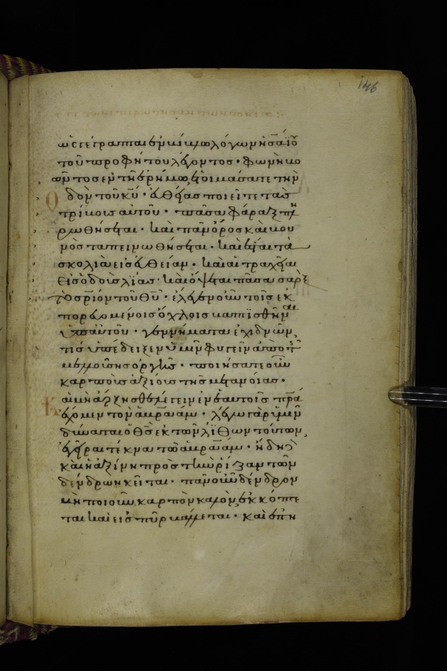 Fourteenth century minuscule (dated to 1321) of the Gospels on parchment; 290 leaves, 1 column, 21-23 lines per column. Images were taken at the National Library of Greece in Athens.