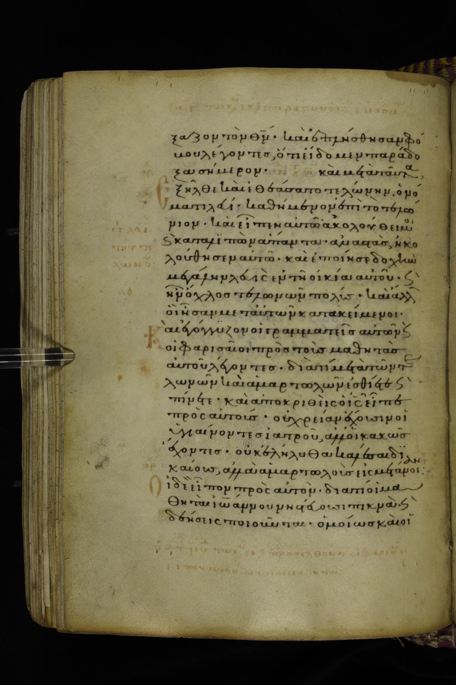 Fourteenth century minuscule (dated to 1321) of the Gospels on parchment; 290 leaves, 1 column, 21-23 lines per column. Images were taken at the National Library of Greece in Athens.