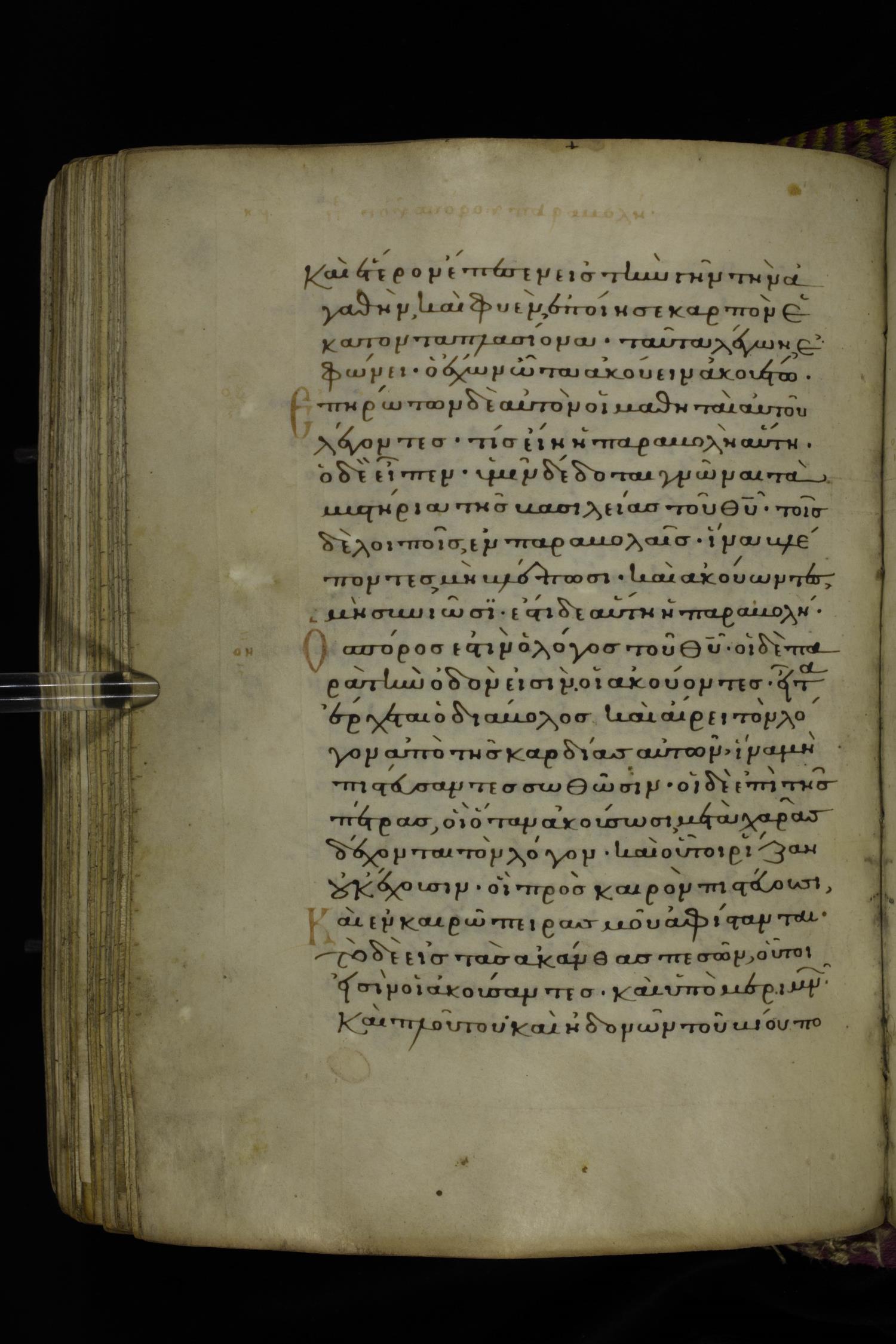 Fourteenth century minuscule (dated to 1321) of the Gospels on parchment; 290 leaves, 1 column, 21-23 lines per column. Images were taken at the National Library of Greece in Athens.