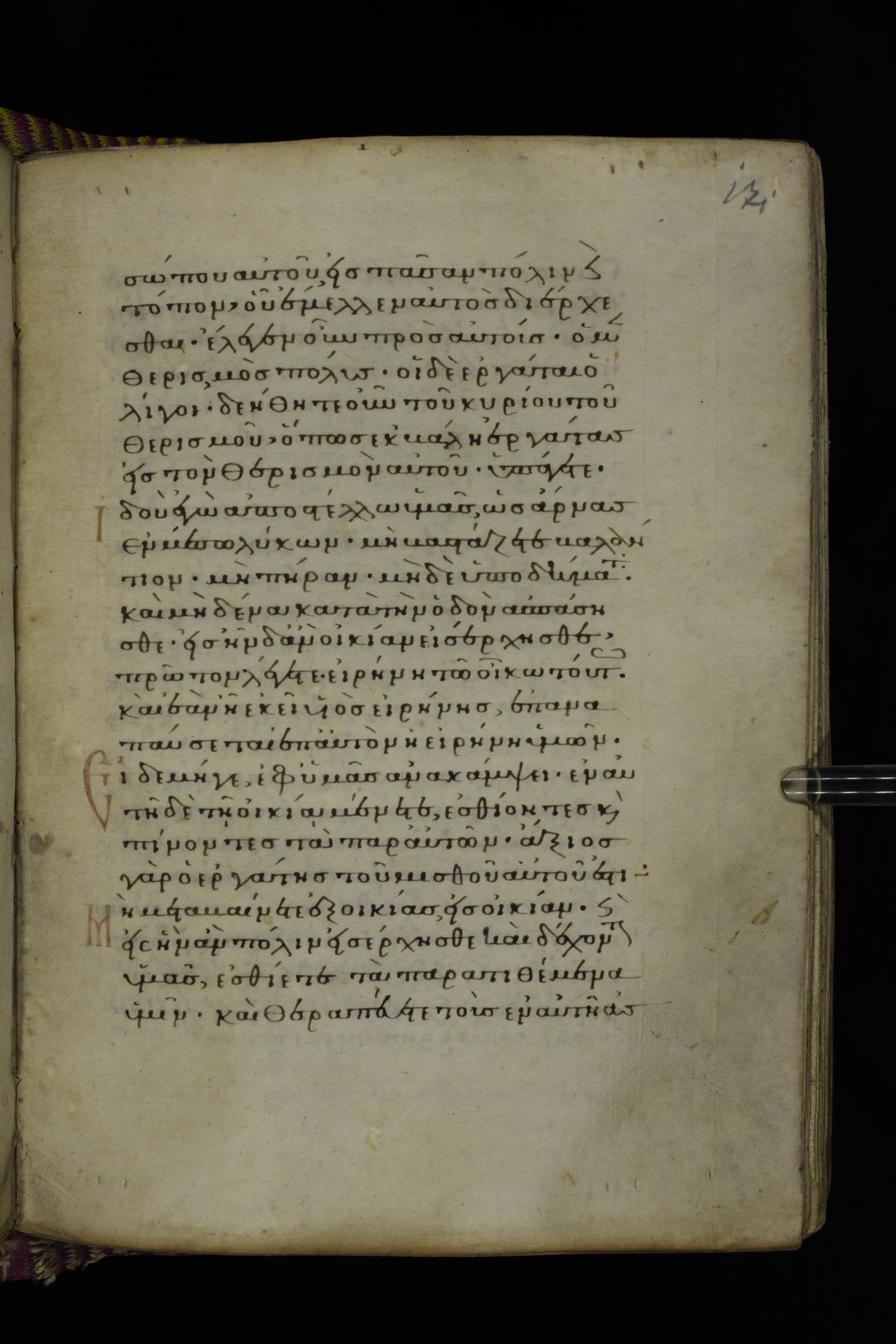 Fourteenth century minuscule (dated to 1321) of the Gospels on parchment; 290 leaves, 1 column, 21-23 lines per column. Images were taken at the National Library of Greece in Athens.
