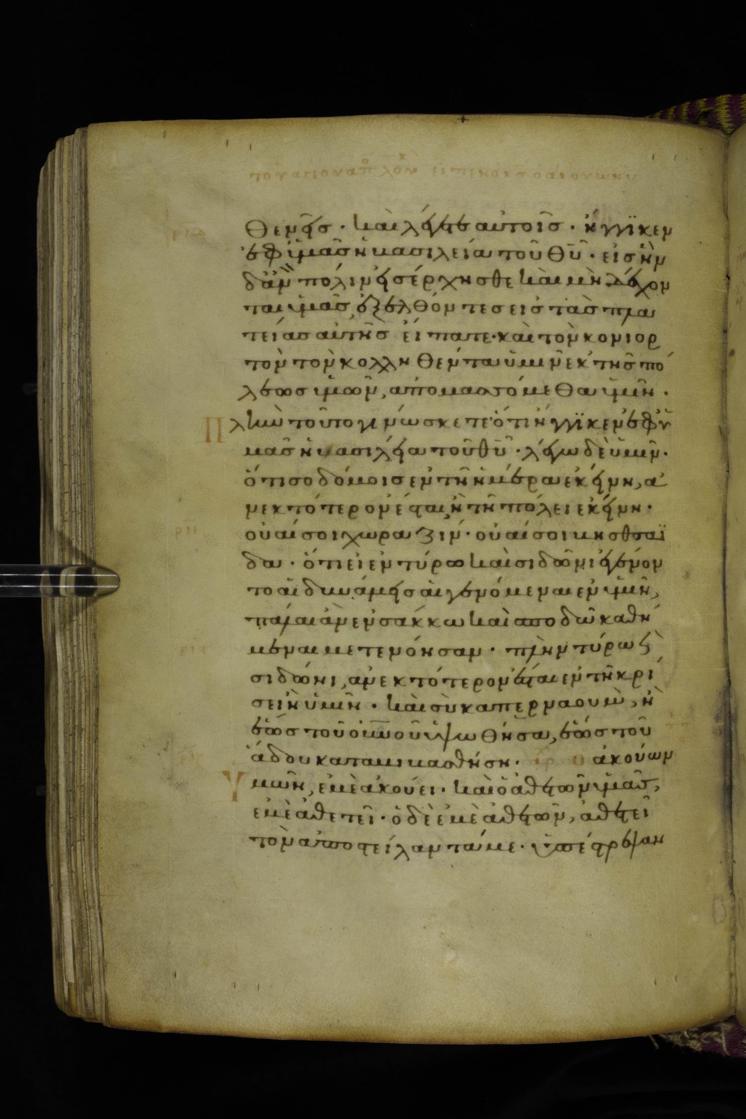 Fourteenth century minuscule (dated to 1321) of the Gospels on parchment; 290 leaves, 1 column, 21-23 lines per column. Images were taken at the National Library of Greece in Athens.