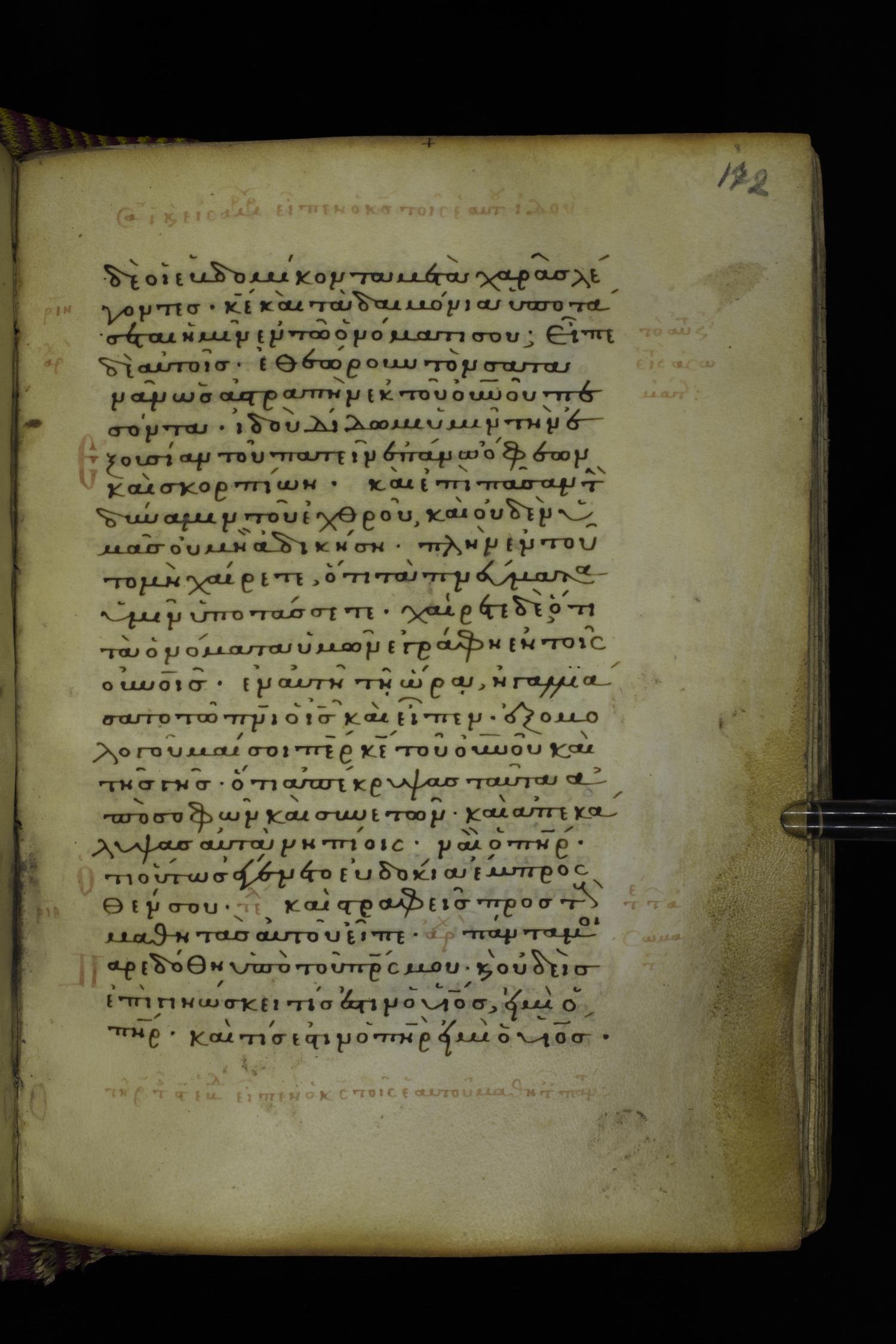 Fourteenth century minuscule (dated to 1321) of the Gospels on parchment; 290 leaves, 1 column, 21-23 lines per column. Images were taken at the National Library of Greece in Athens.
