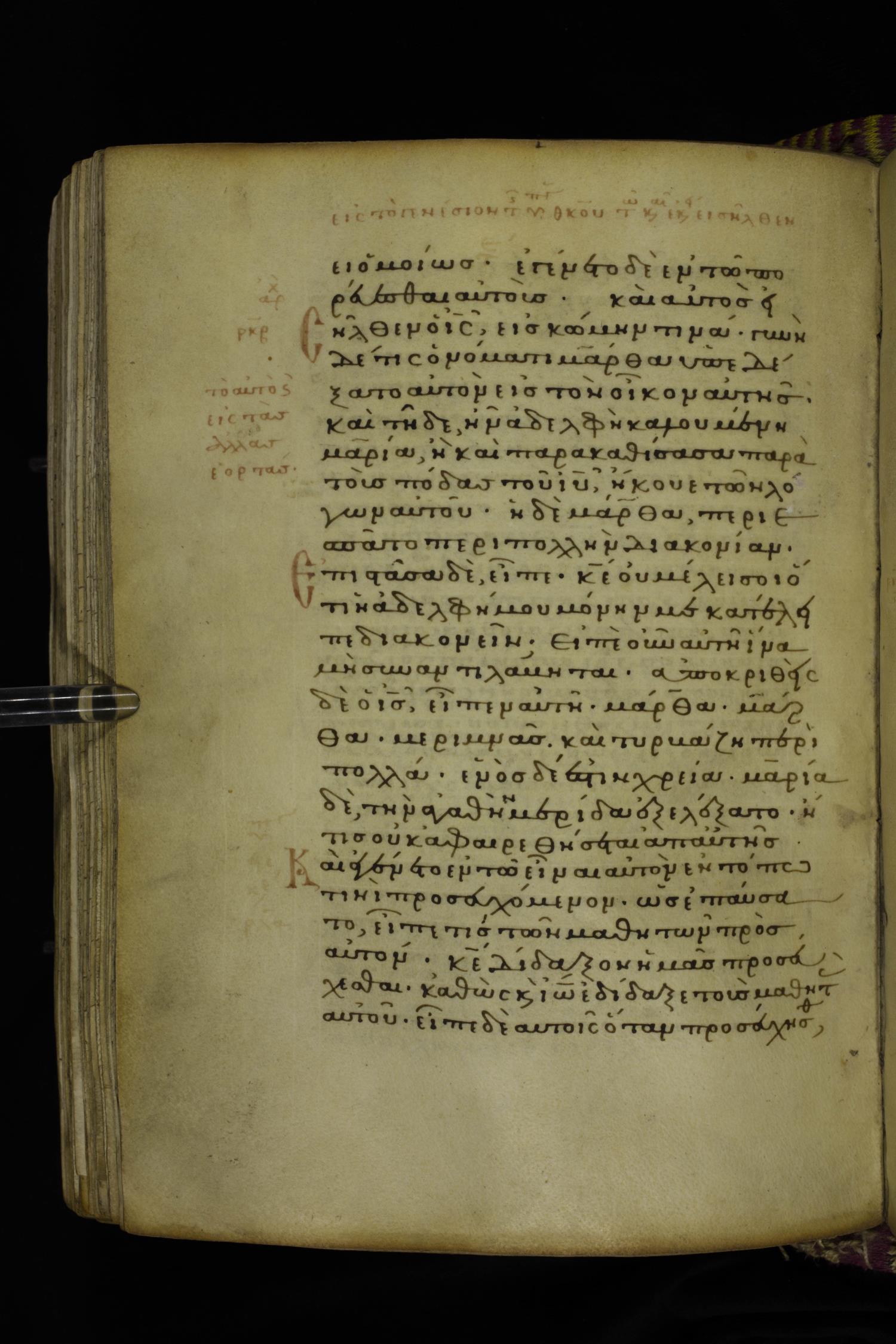 Fourteenth century minuscule (dated to 1321) of the Gospels on parchment; 290 leaves, 1 column, 21-23 lines per column. Images were taken at the National Library of Greece in Athens.