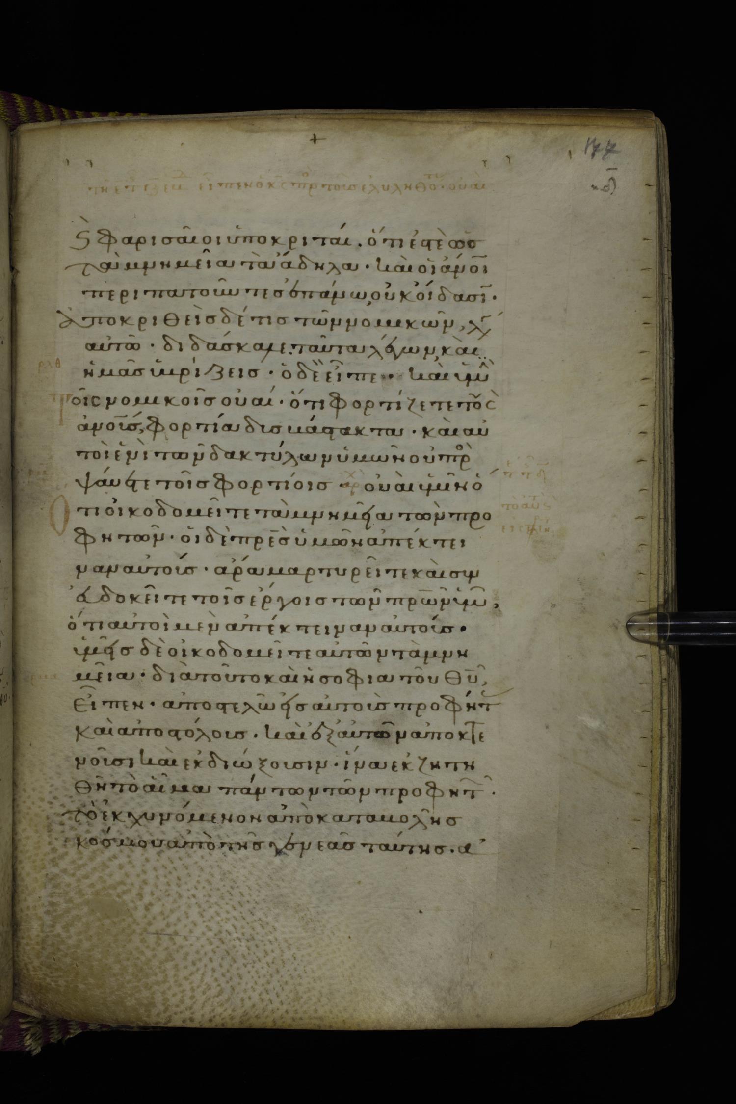 Fourteenth century minuscule (dated to 1321) of the Gospels on parchment; 290 leaves, 1 column, 21-23 lines per column. Images were taken at the National Library of Greece in Athens.