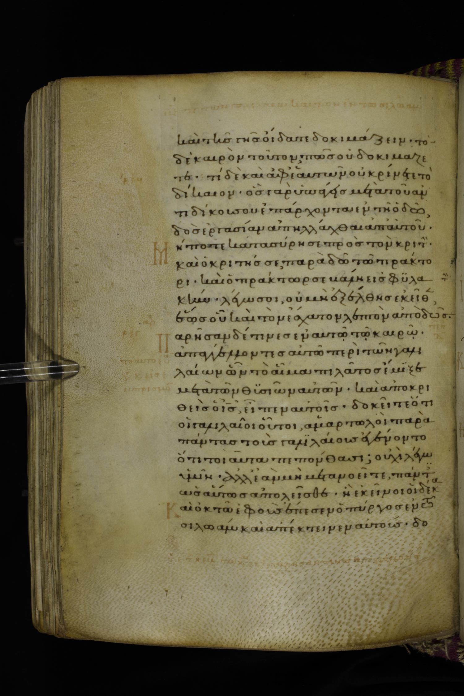Fourteenth century minuscule (dated to 1321) of the Gospels on parchment; 290 leaves, 1 column, 21-23 lines per column. Images were taken at the National Library of Greece in Athens.