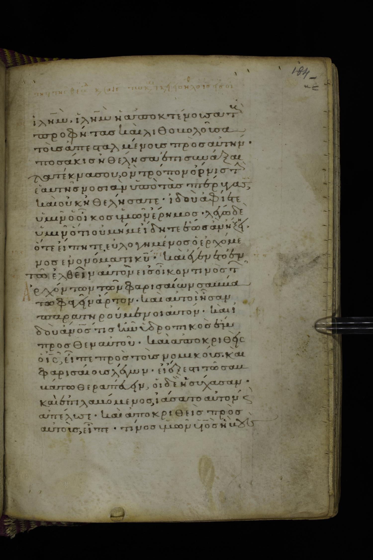 Fourteenth century minuscule (dated to 1321) of the Gospels on parchment; 290 leaves, 1 column, 21-23 lines per column. Images were taken at the National Library of Greece in Athens.