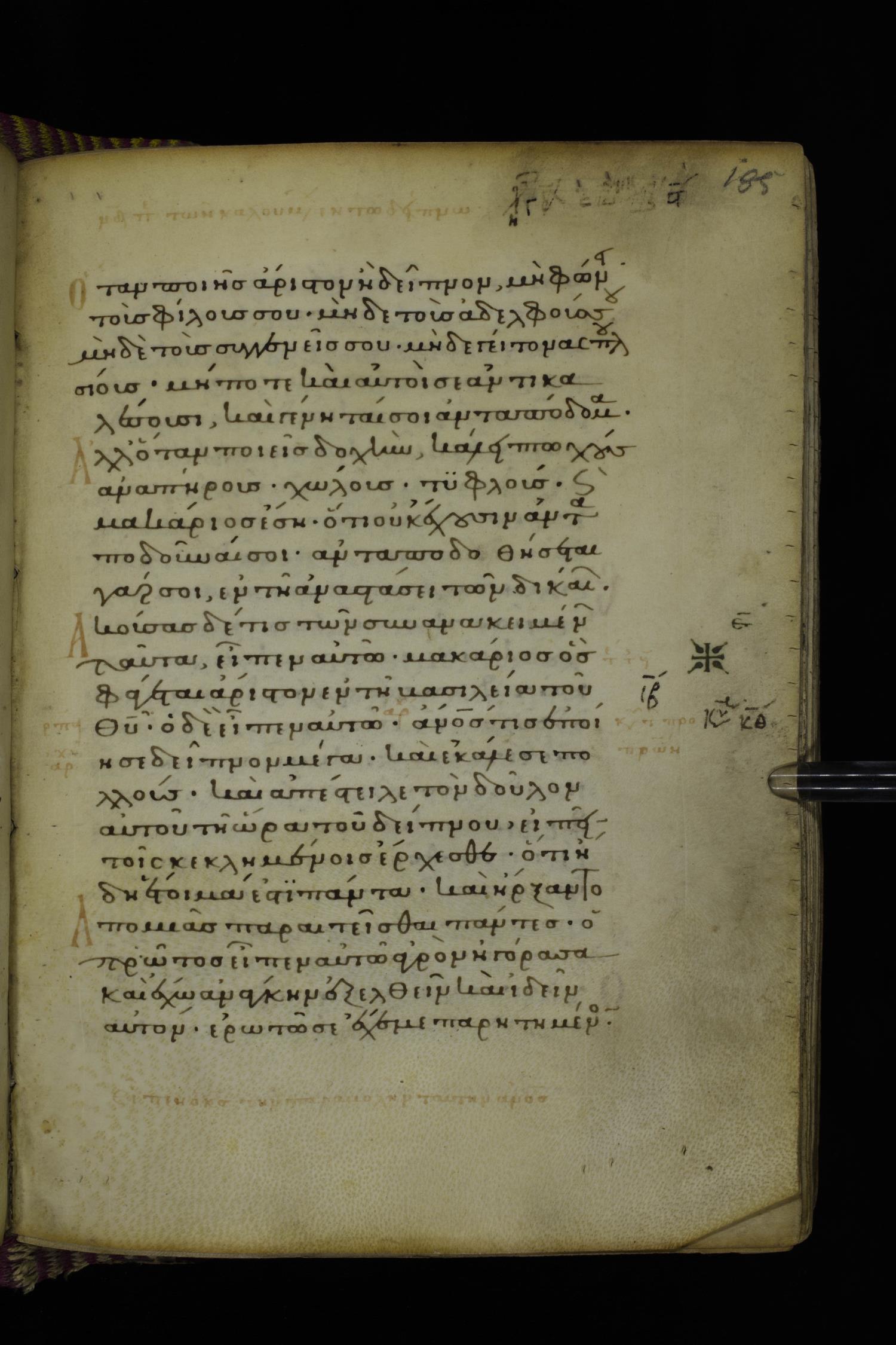 Fourteenth century minuscule (dated to 1321) of the Gospels on parchment; 290 leaves, 1 column, 21-23 lines per column. Images were taken at the National Library of Greece in Athens.