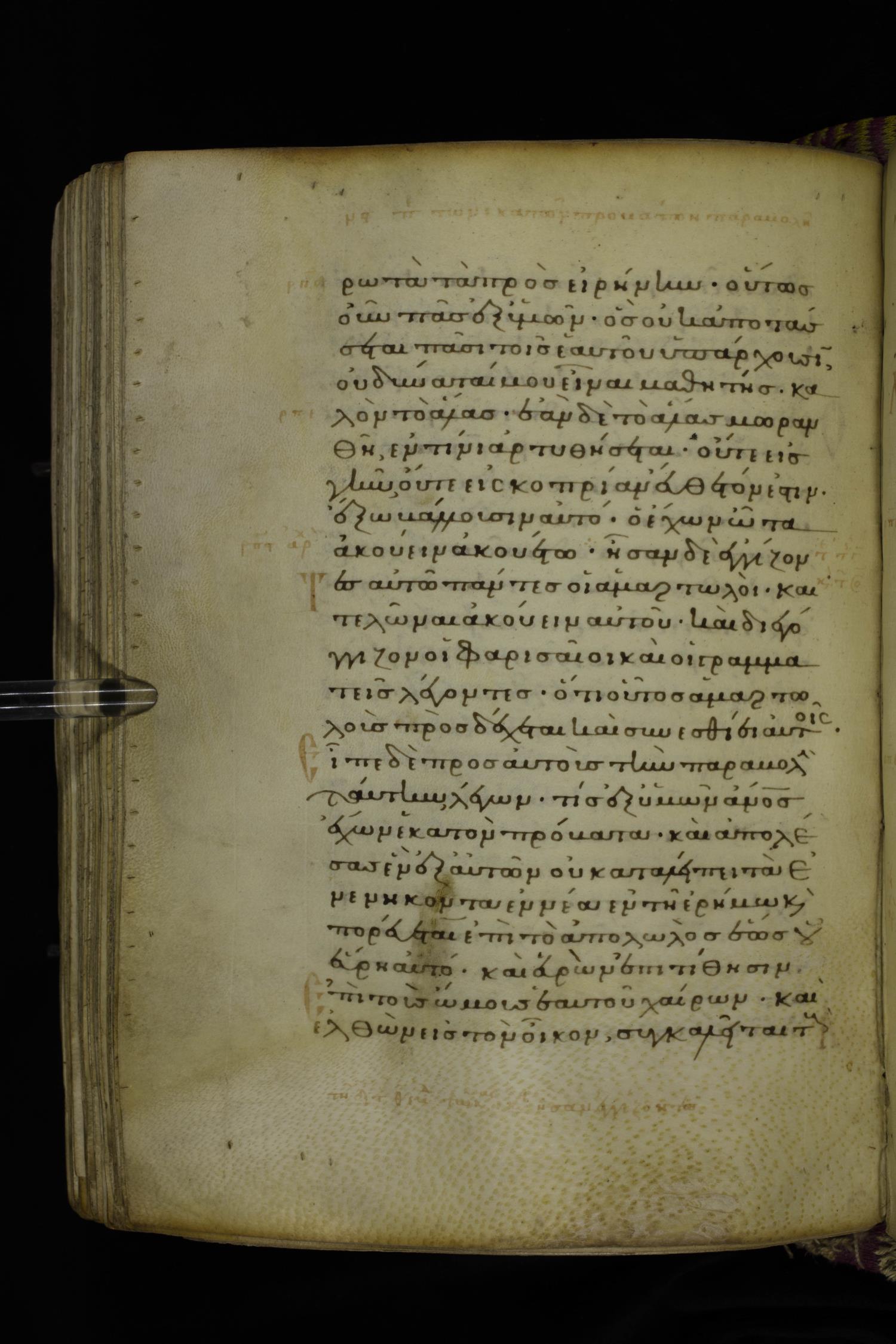 Fourteenth century minuscule (dated to 1321) of the Gospels on parchment; 290 leaves, 1 column, 21-23 lines per column. Images were taken at the National Library of Greece in Athens.