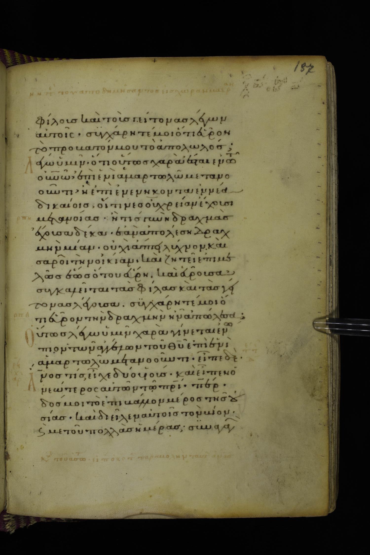 Fourteenth century minuscule (dated to 1321) of the Gospels on parchment; 290 leaves, 1 column, 21-23 lines per column. Images were taken at the National Library of Greece in Athens.