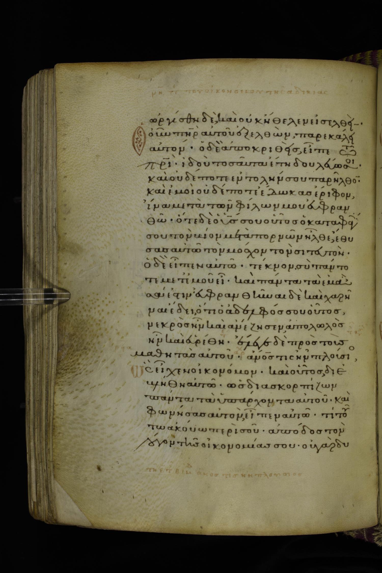 Fourteenth century minuscule (dated to 1321) of the Gospels on parchment; 290 leaves, 1 column, 21-23 lines per column. Images were taken at the National Library of Greece in Athens.