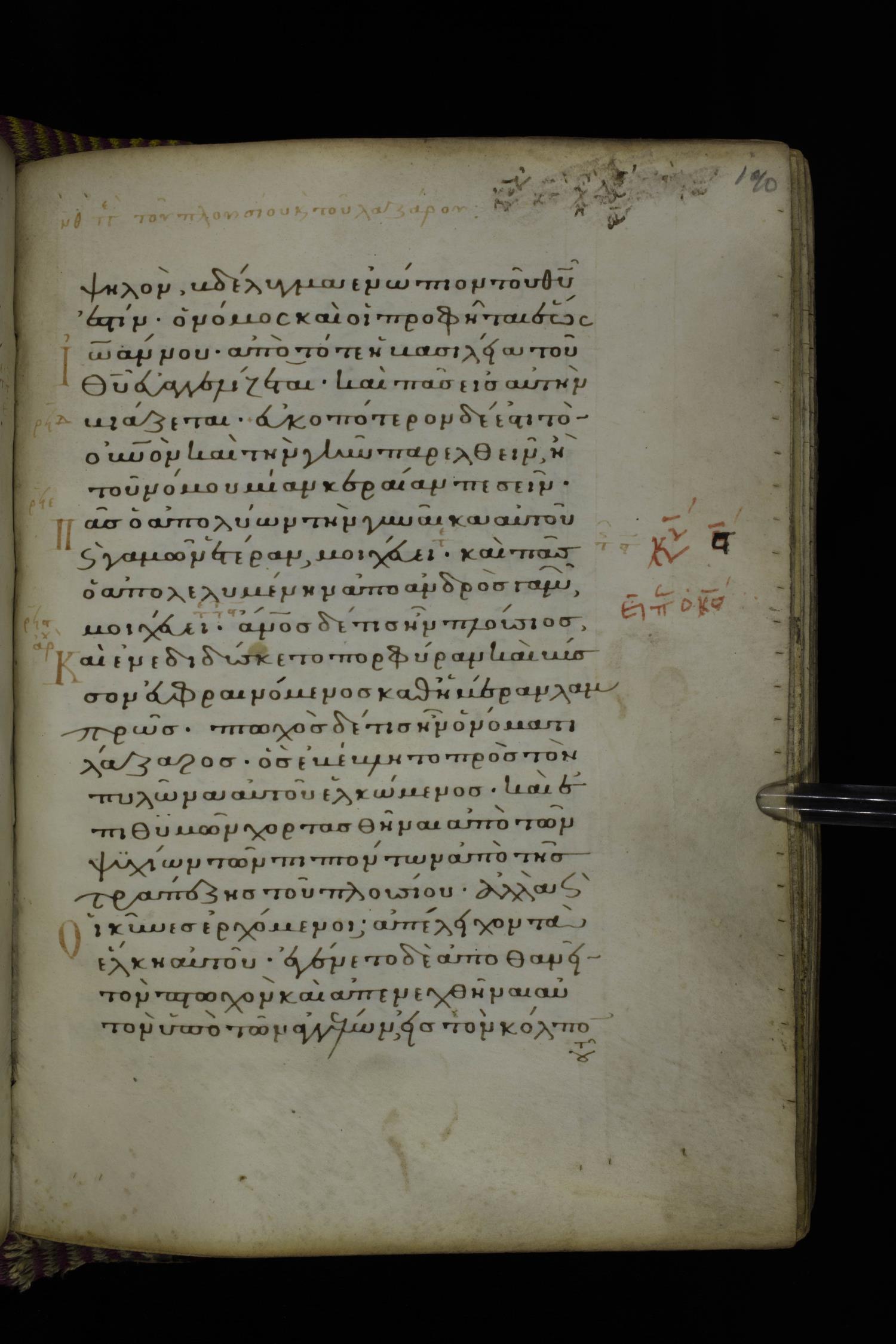 Fourteenth century minuscule (dated to 1321) of the Gospels on parchment; 290 leaves, 1 column, 21-23 lines per column. Images were taken at the National Library of Greece in Athens.
