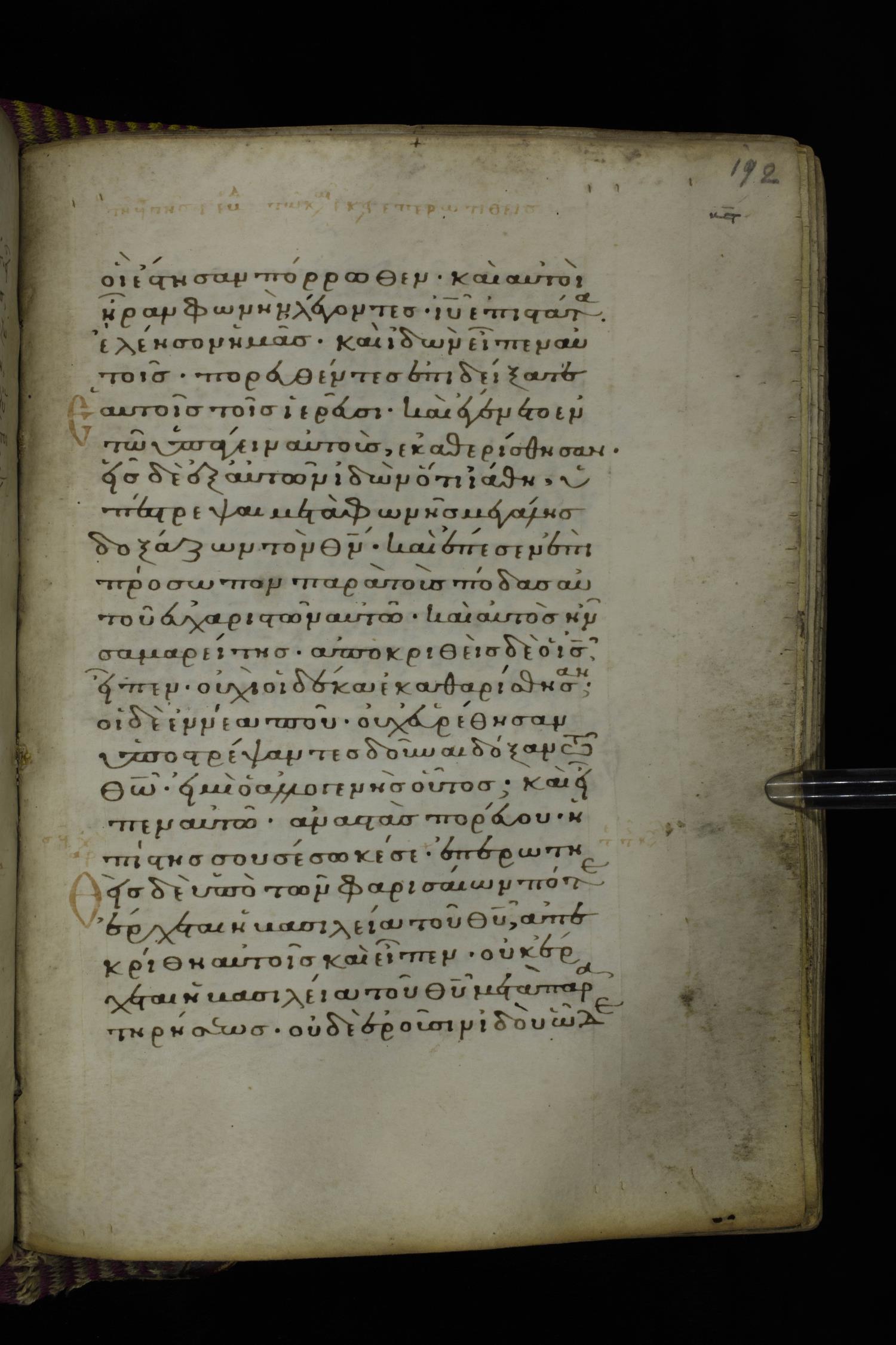 Fourteenth century minuscule (dated to 1321) of the Gospels on parchment; 290 leaves, 1 column, 21-23 lines per column. Images were taken at the National Library of Greece in Athens.