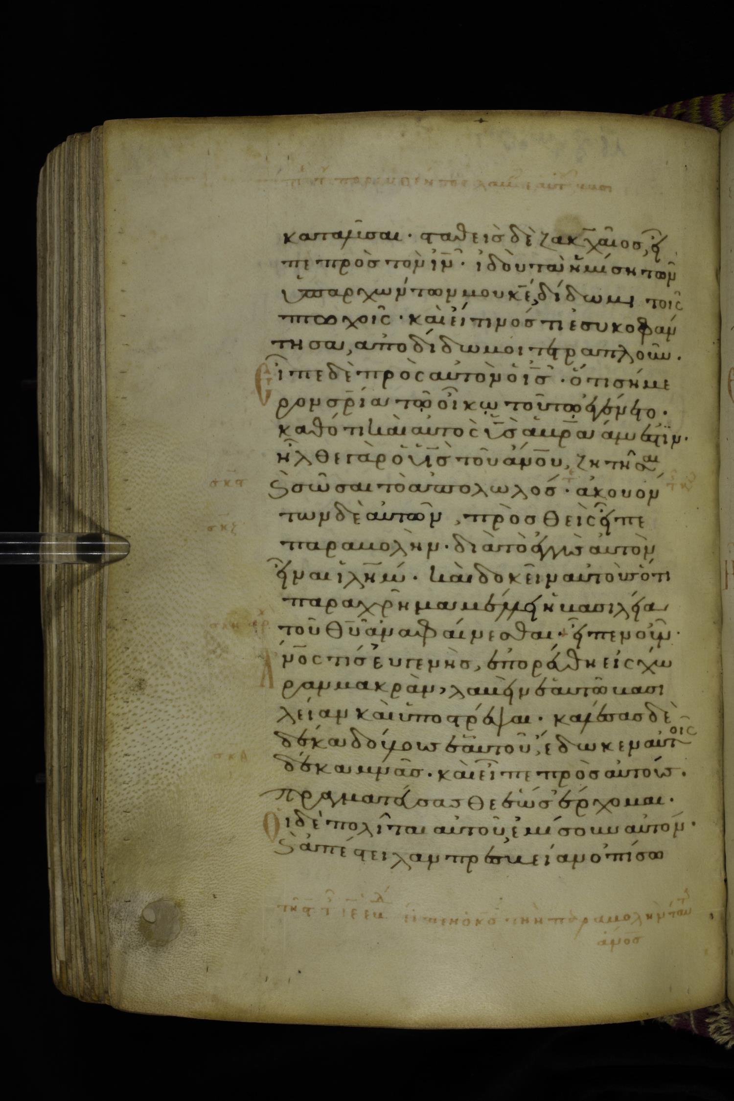 Fourteenth century minuscule (dated to 1321) of the Gospels on parchment; 290 leaves, 1 column, 21-23 lines per column. Images were taken at the National Library of Greece in Athens.
