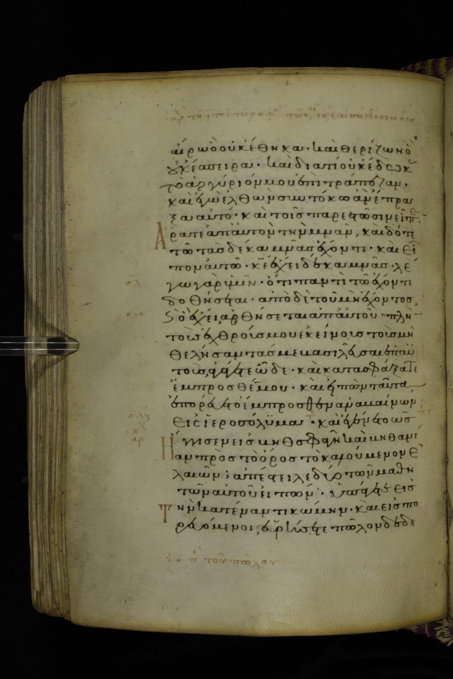 Fourteenth century minuscule (dated to 1321) of the Gospels on parchment; 290 leaves, 1 column, 21-23 lines per column. Images were taken at the National Library of Greece in Athens.