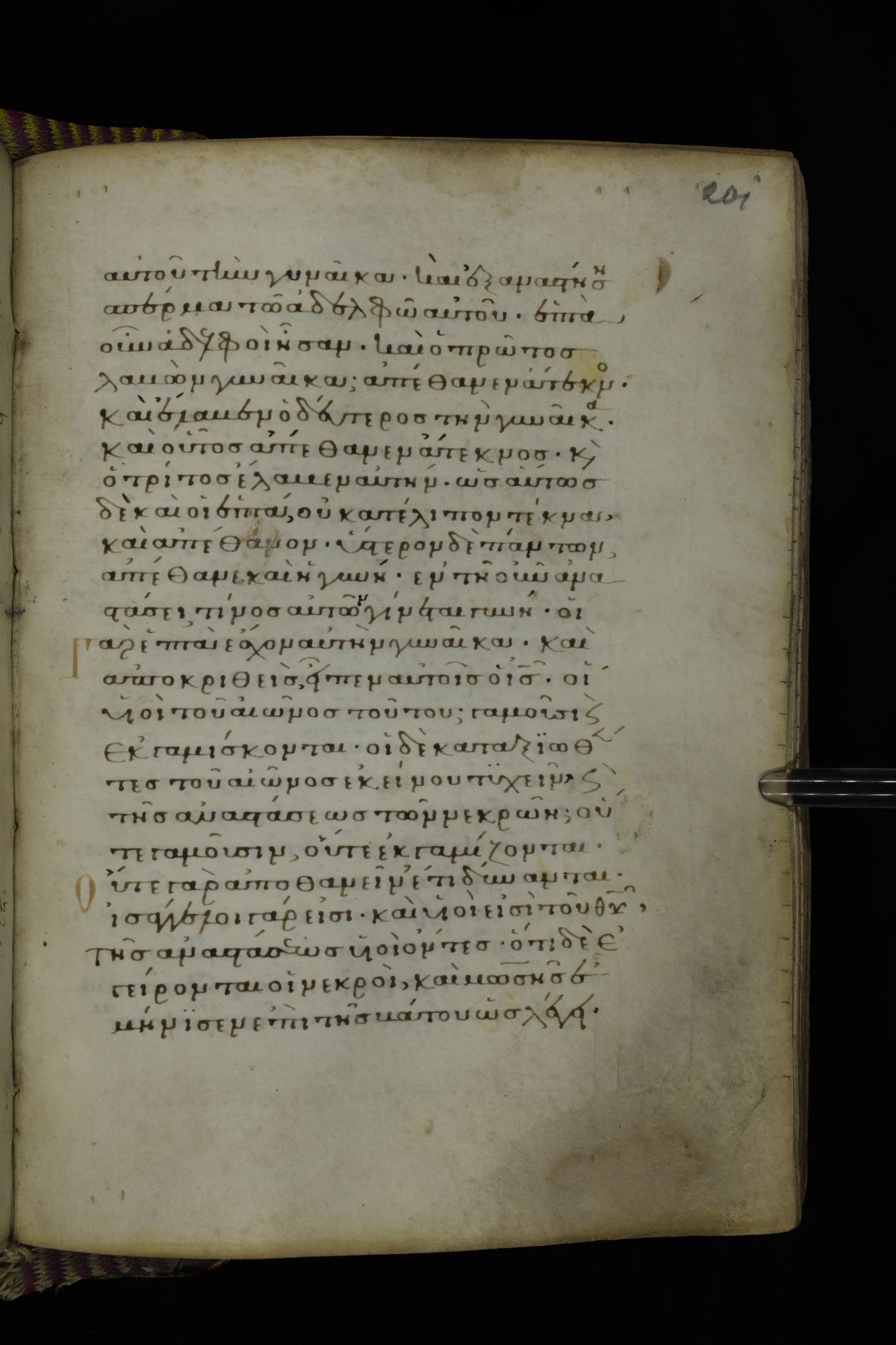 Fourteenth century minuscule (dated to 1321) of the Gospels on parchment; 290 leaves, 1 column, 21-23 lines per column. Images were taken at the National Library of Greece in Athens.