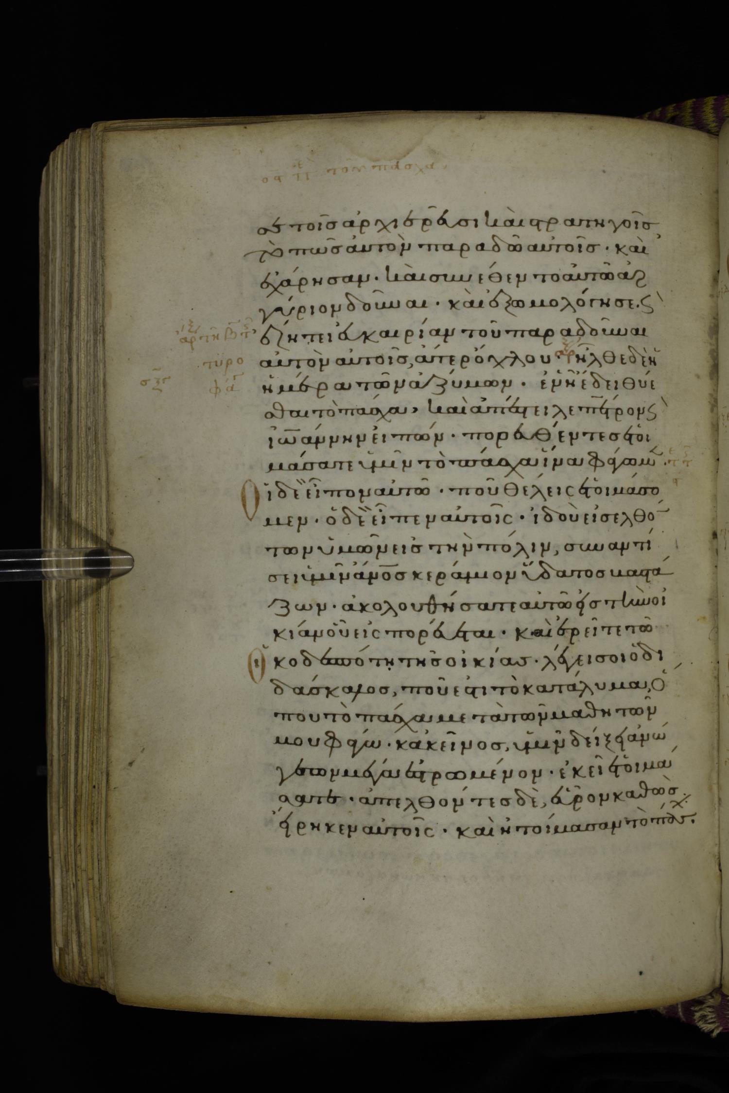 Fourteenth century minuscule (dated to 1321) of the Gospels on parchment; 290 leaves, 1 column, 21-23 lines per column. Images were taken at the National Library of Greece in Athens.