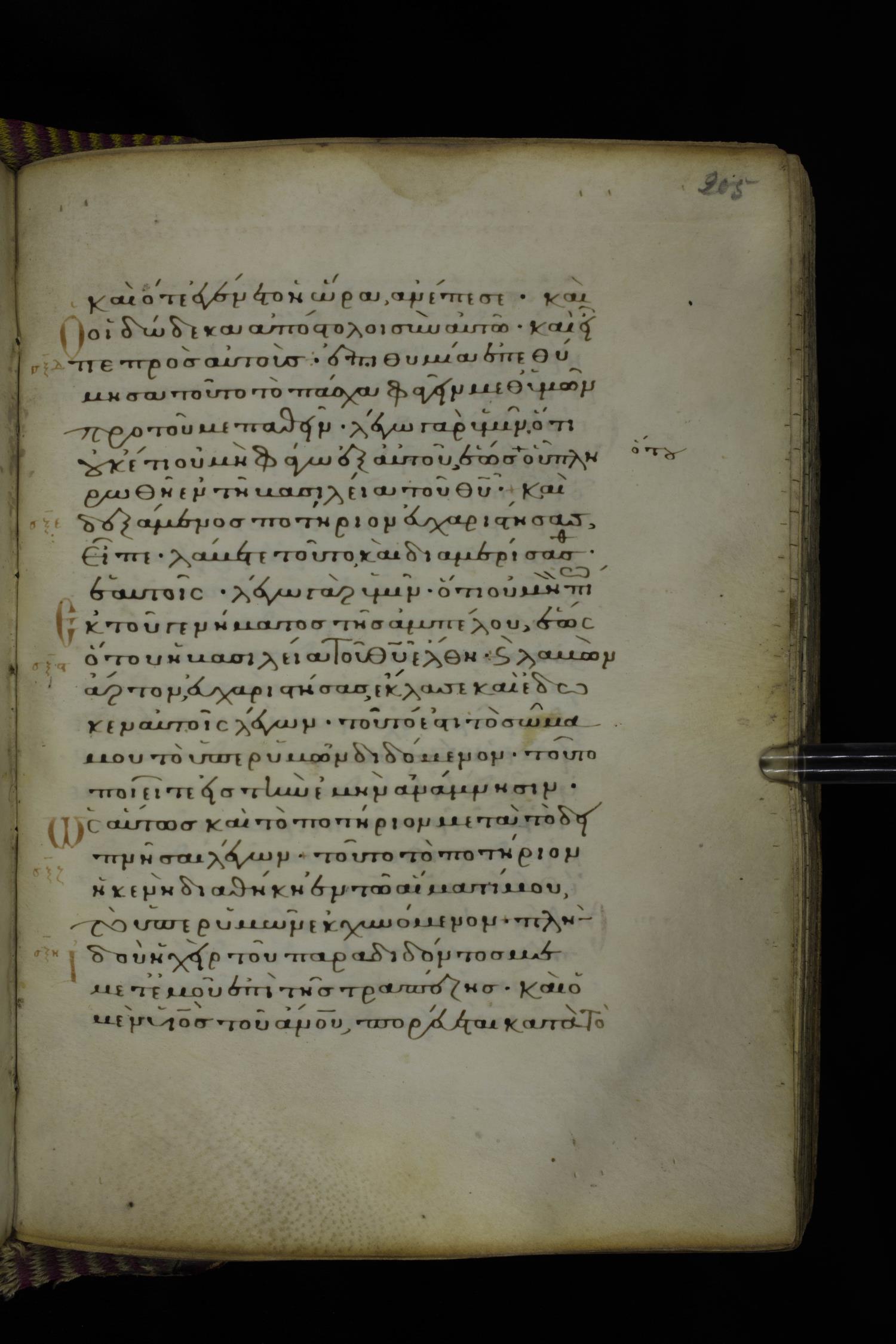 Fourteenth century minuscule (dated to 1321) of the Gospels on parchment; 290 leaves, 1 column, 21-23 lines per column. Images were taken at the National Library of Greece in Athens.