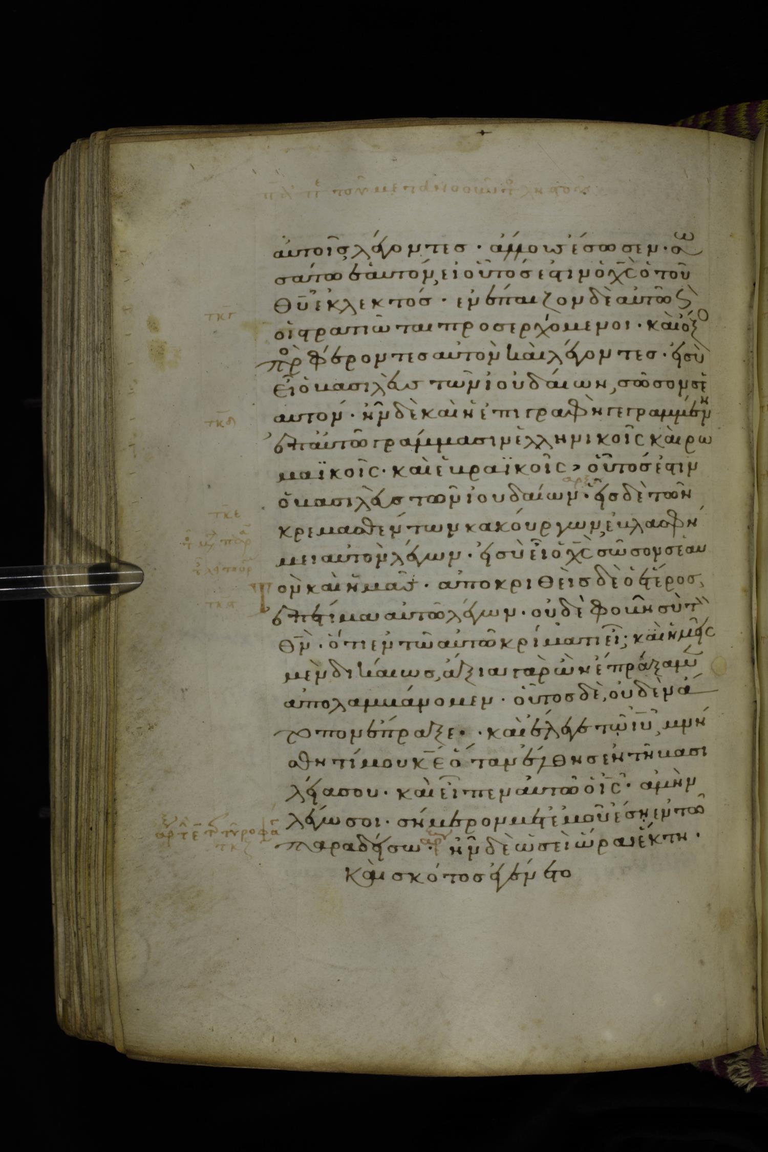 Fourteenth century minuscule (dated to 1321) of the Gospels on parchment; 290 leaves, 1 column, 21-23 lines per column. Images were taken at the National Library of Greece in Athens.