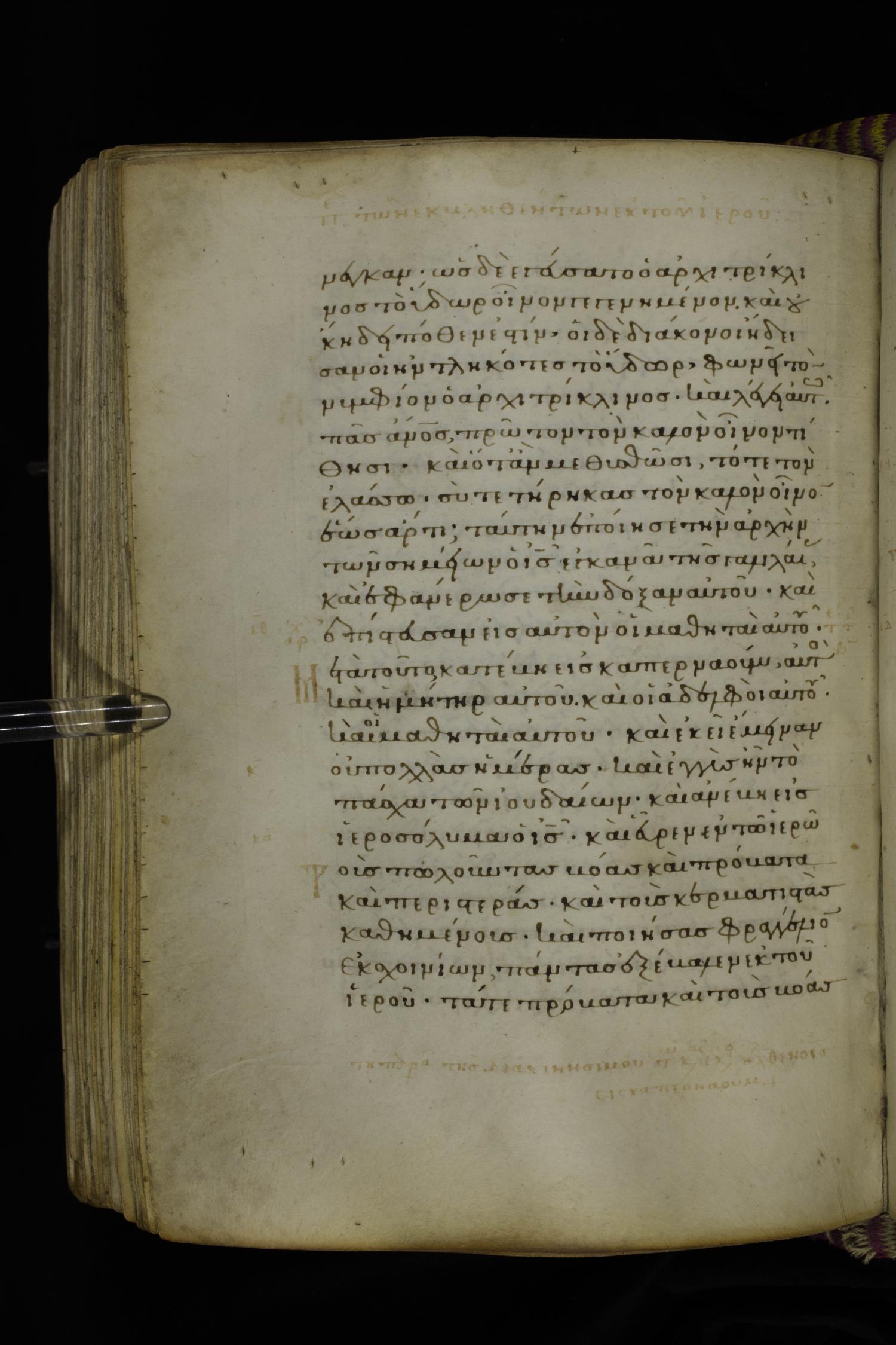 Fourteenth century minuscule (dated to 1321) of the Gospels on parchment; 290 leaves, 1 column, 21-23 lines per column. Images were taken at the National Library of Greece in Athens.