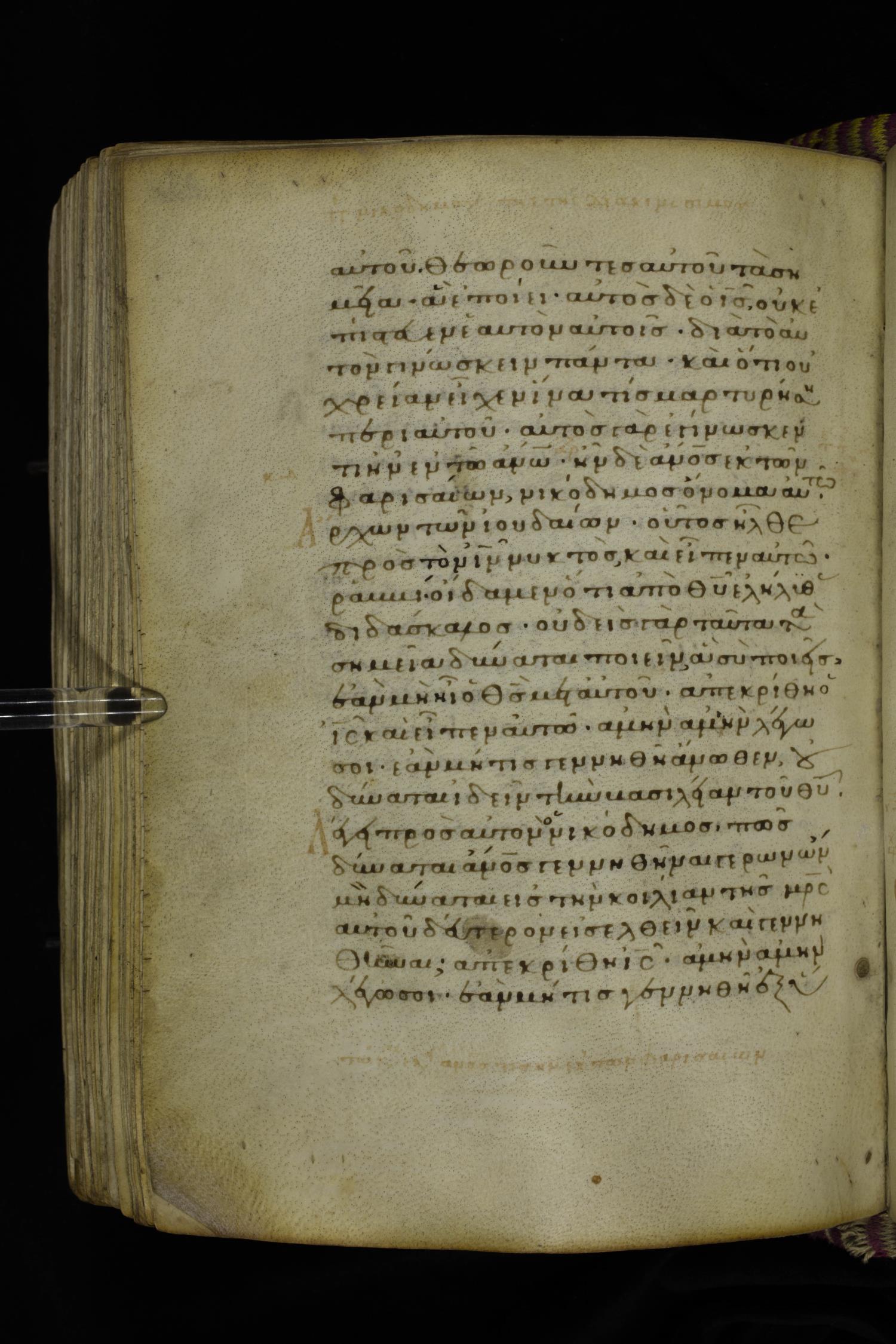Fourteenth century minuscule (dated to 1321) of the Gospels on parchment; 290 leaves, 1 column, 21-23 lines per column. Images were taken at the National Library of Greece in Athens.