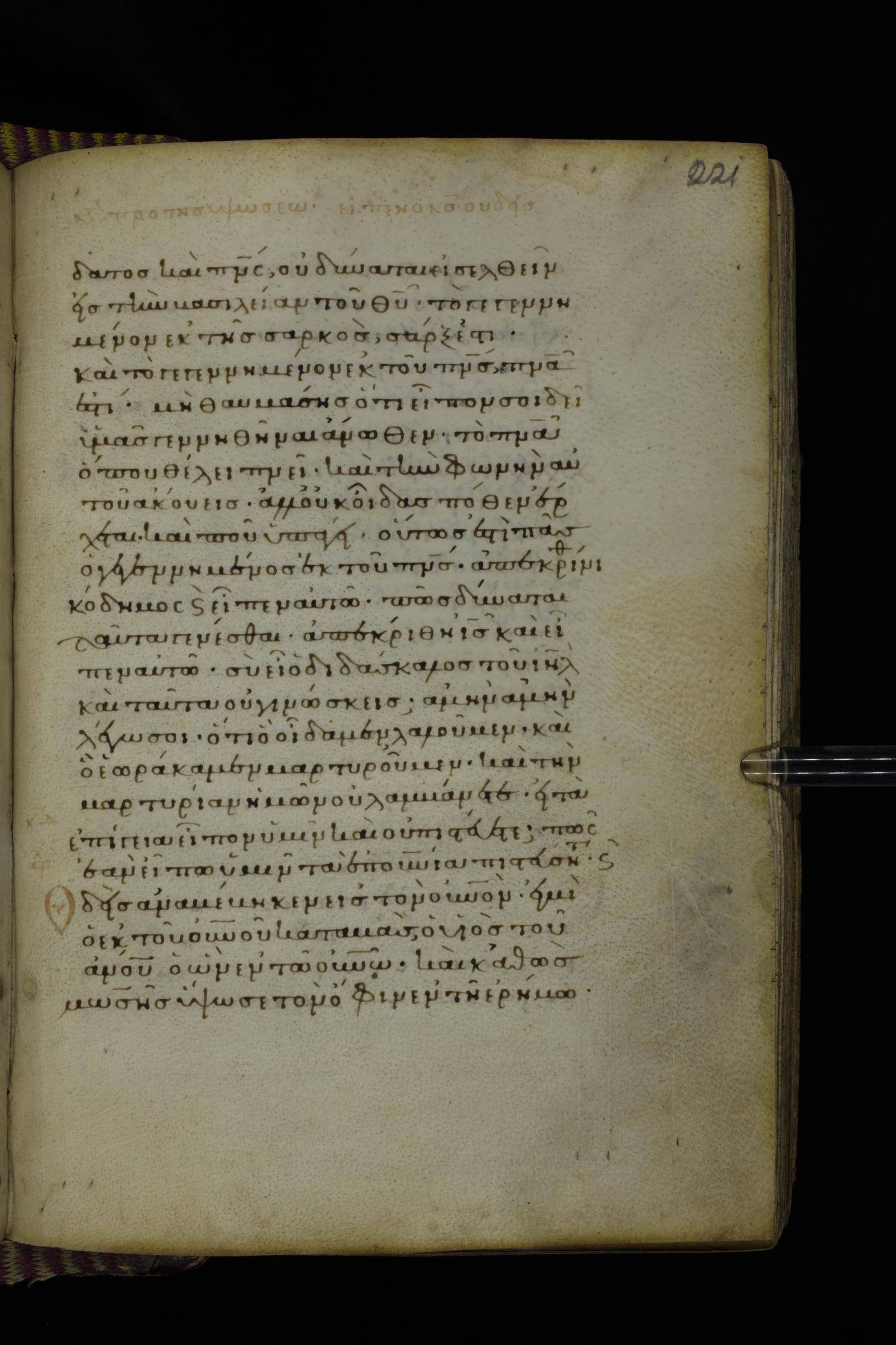 Fourteenth century minuscule (dated to 1321) of the Gospels on parchment; 290 leaves, 1 column, 21-23 lines per column. Images were taken at the National Library of Greece in Athens.