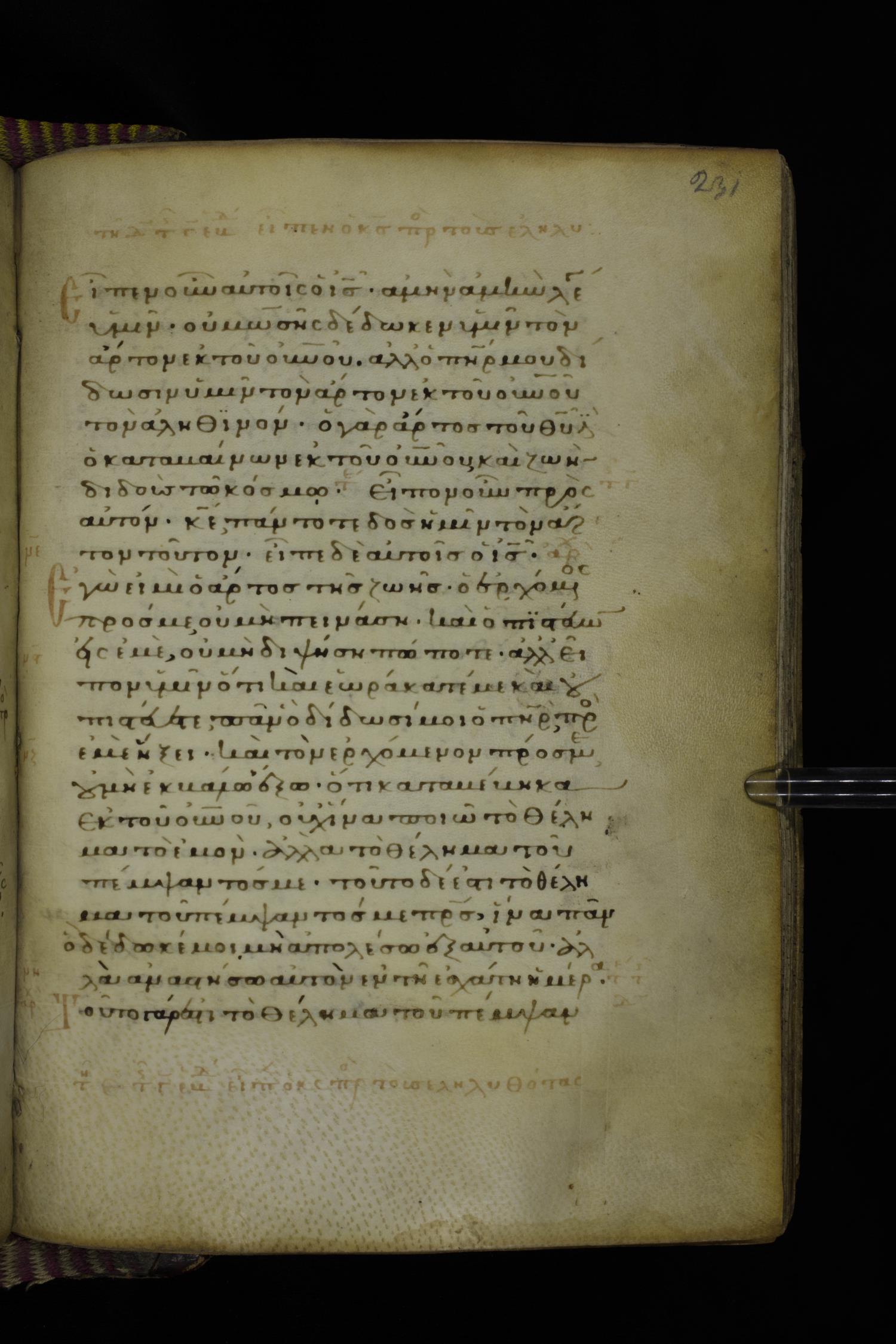 Fourteenth century minuscule (dated to 1321) of the Gospels on parchment; 290 leaves, 1 column, 21-23 lines per column. Images were taken at the National Library of Greece in Athens.