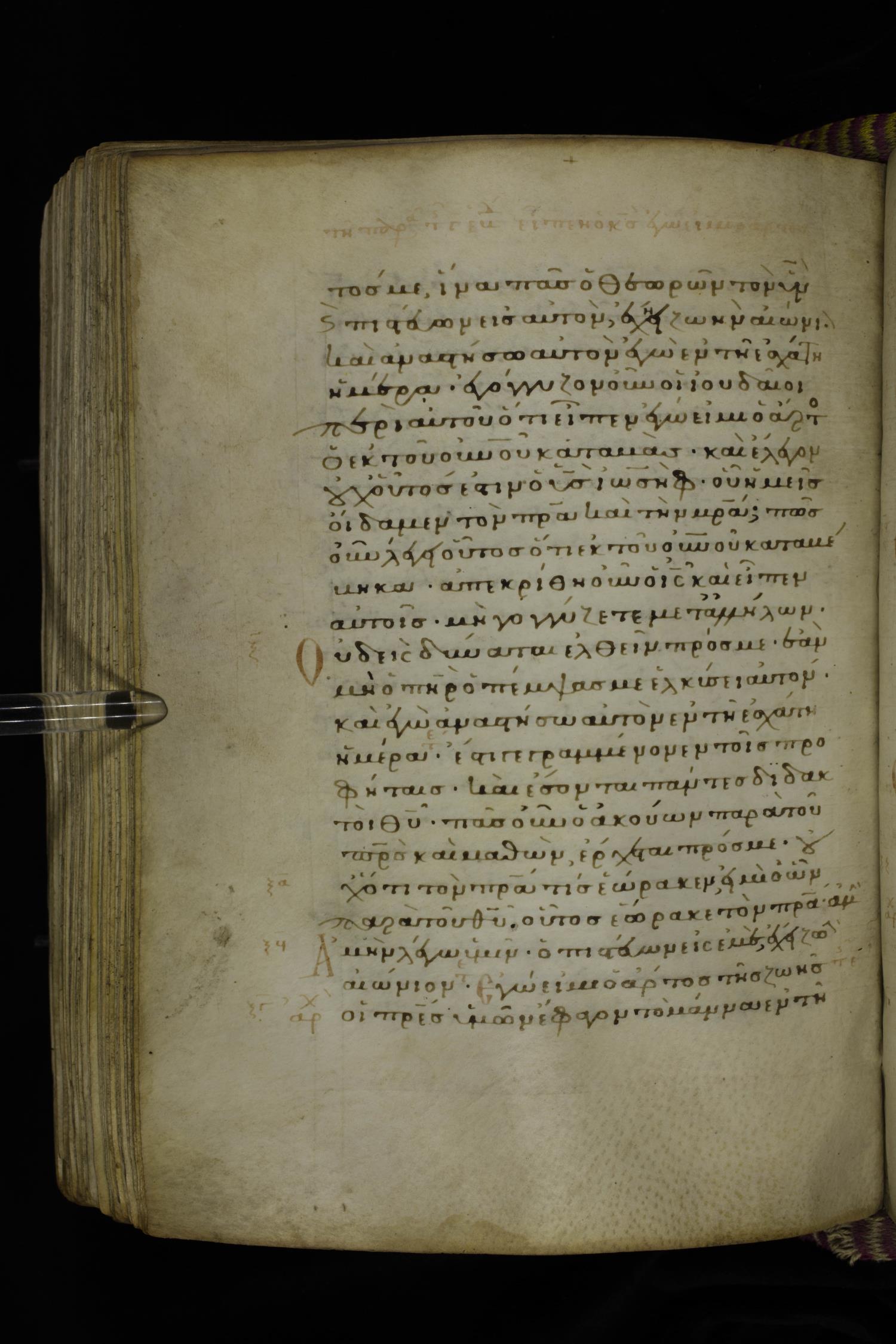 Fourteenth century minuscule (dated to 1321) of the Gospels on parchment; 290 leaves, 1 column, 21-23 lines per column. Images were taken at the National Library of Greece in Athens.