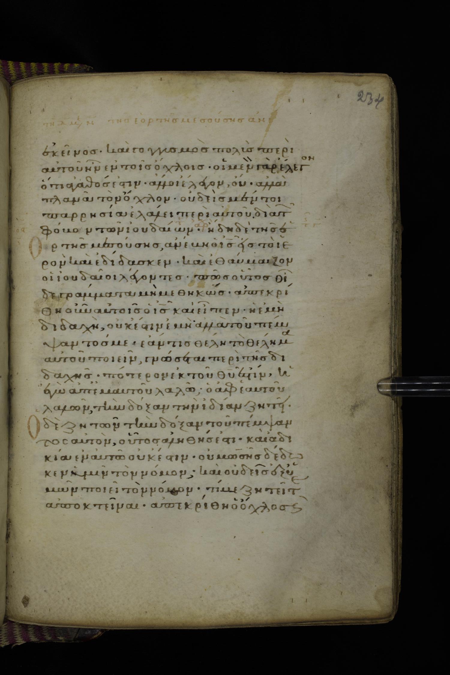 Fourteenth century minuscule (dated to 1321) of the Gospels on parchment; 290 leaves, 1 column, 21-23 lines per column. Images were taken at the National Library of Greece in Athens.