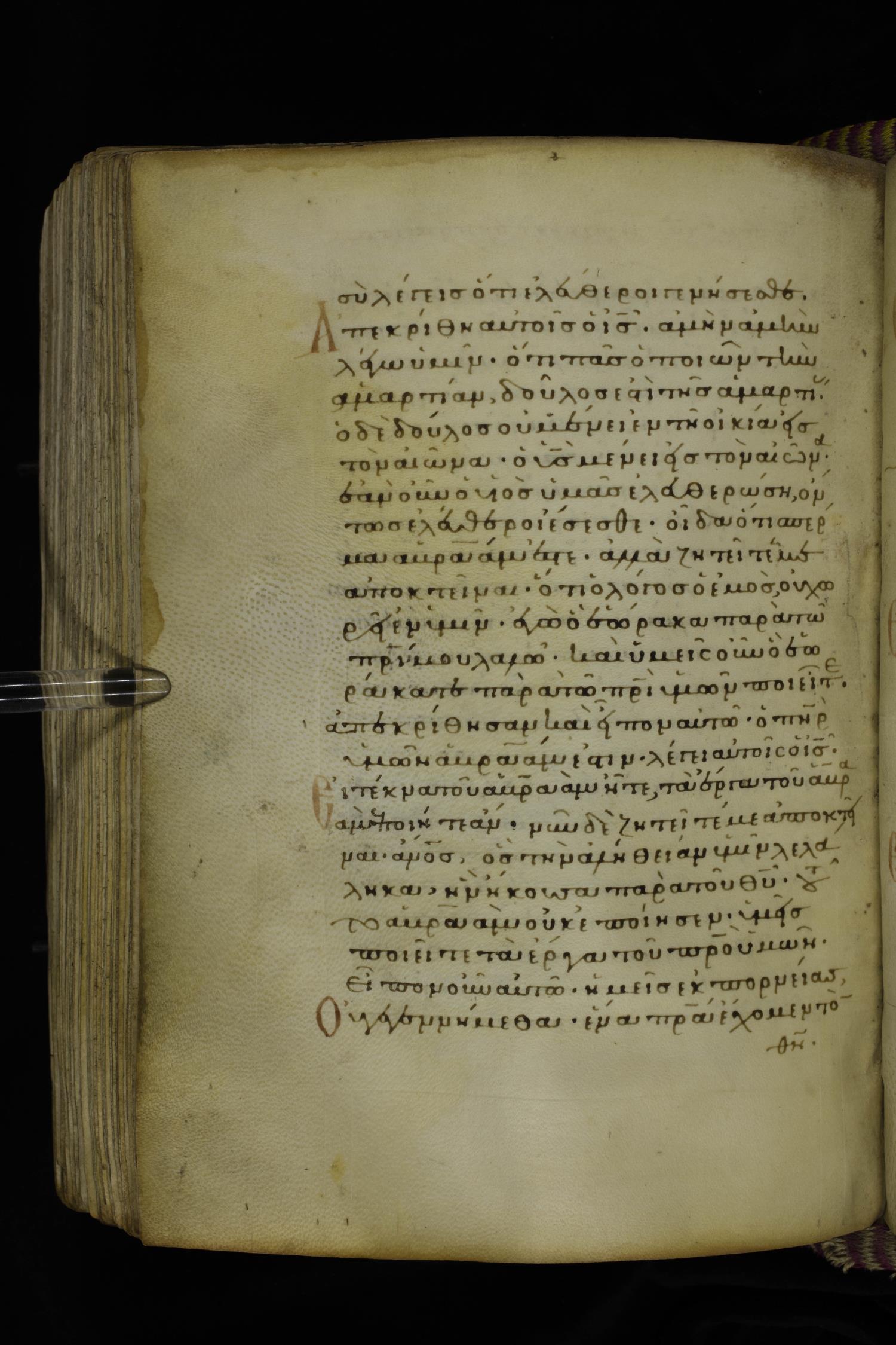 Fourteenth century minuscule (dated to 1321) of the Gospels on parchment; 290 leaves, 1 column, 21-23 lines per column. Images were taken at the National Library of Greece in Athens.