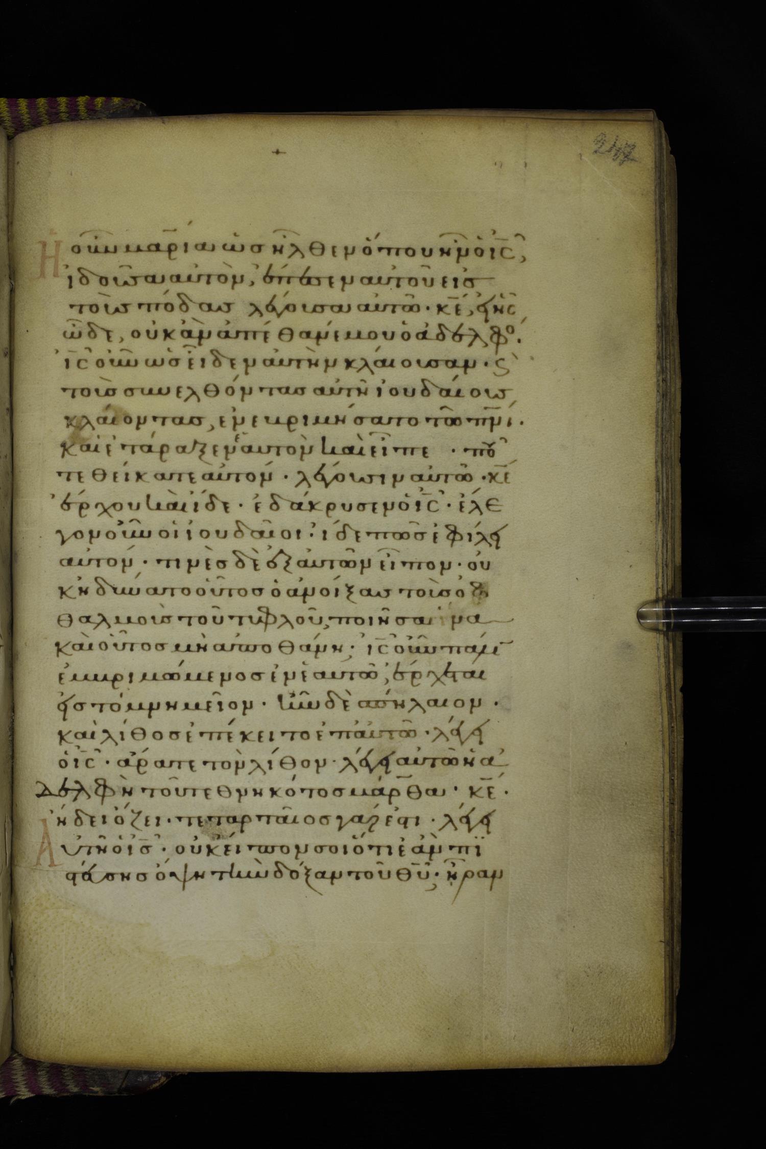 Fourteenth century minuscule (dated to 1321) of the Gospels on parchment; 290 leaves, 1 column, 21-23 lines per column. Images were taken at the National Library of Greece in Athens.