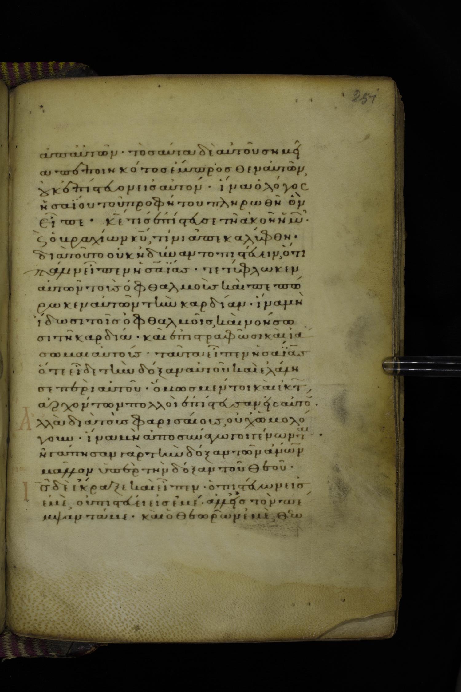 Fourteenth century minuscule (dated to 1321) of the Gospels on parchment; 290 leaves, 1 column, 21-23 lines per column. Images were taken at the National Library of Greece in Athens.