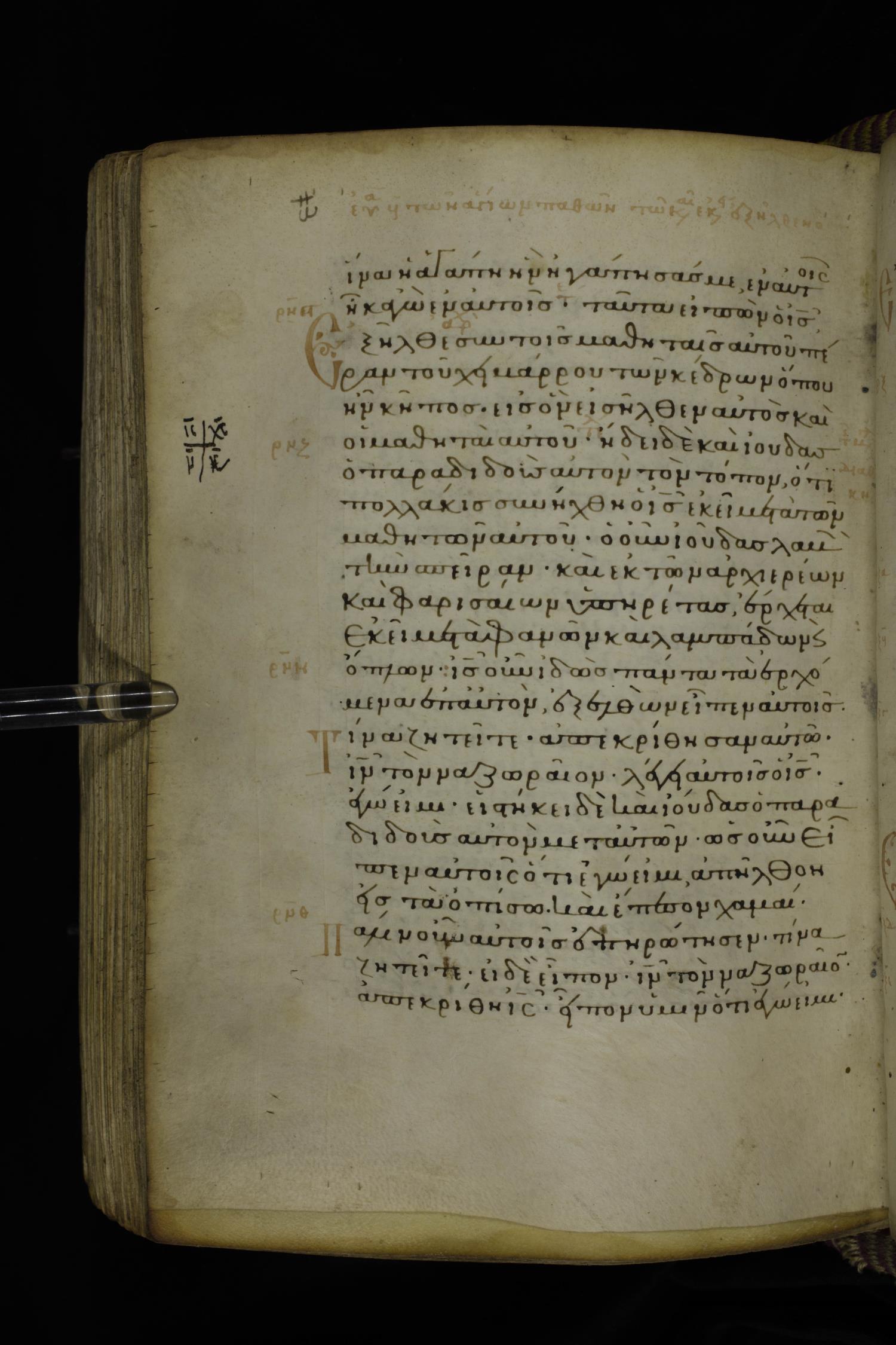 Fourteenth century minuscule (dated to 1321) of the Gospels on parchment; 290 leaves, 1 column, 21-23 lines per column. Images were taken at the National Library of Greece in Athens.