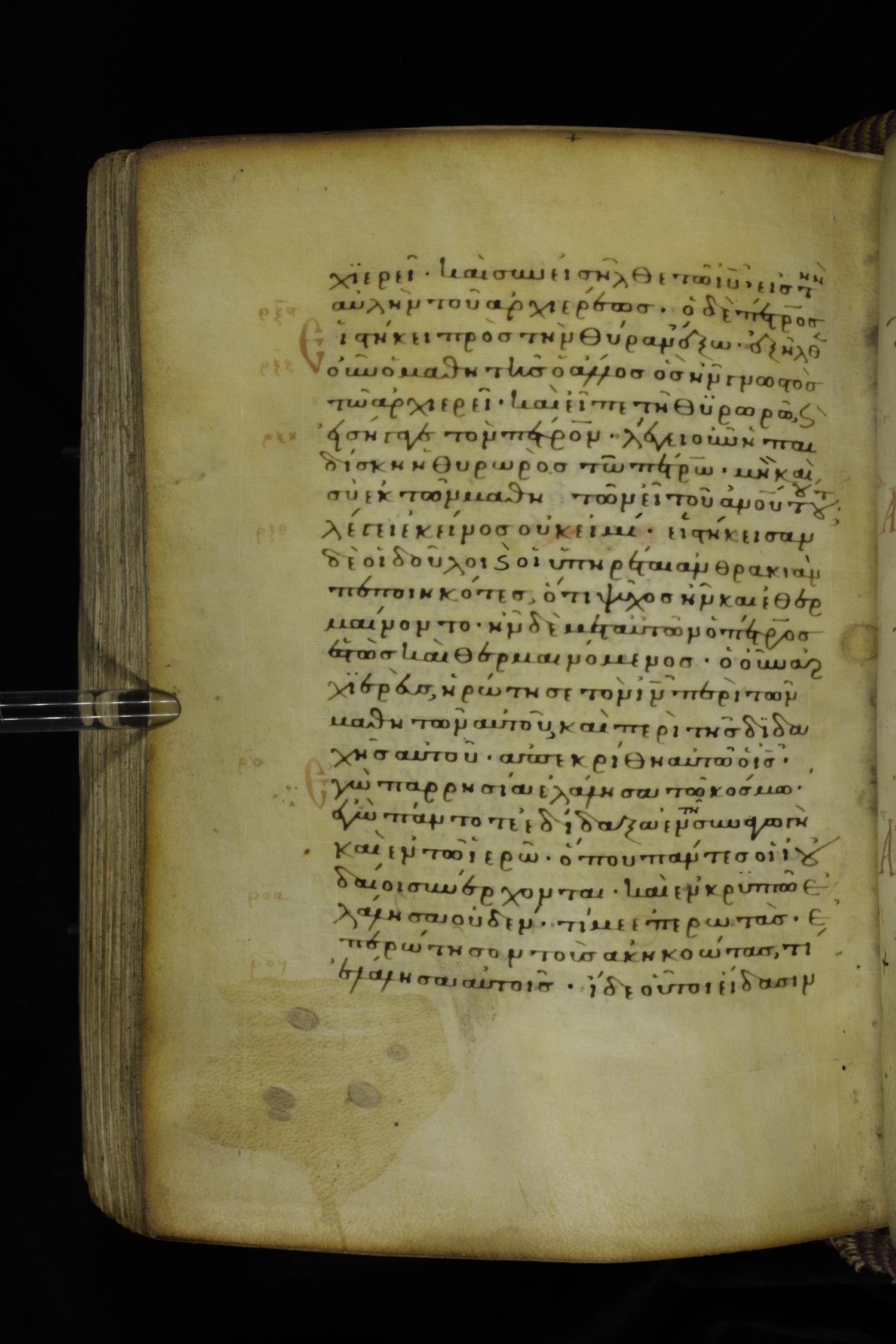 Fourteenth century minuscule (dated to 1321) of the Gospels on parchment; 290 leaves, 1 column, 21-23 lines per column. Images were taken at the National Library of Greece in Athens.