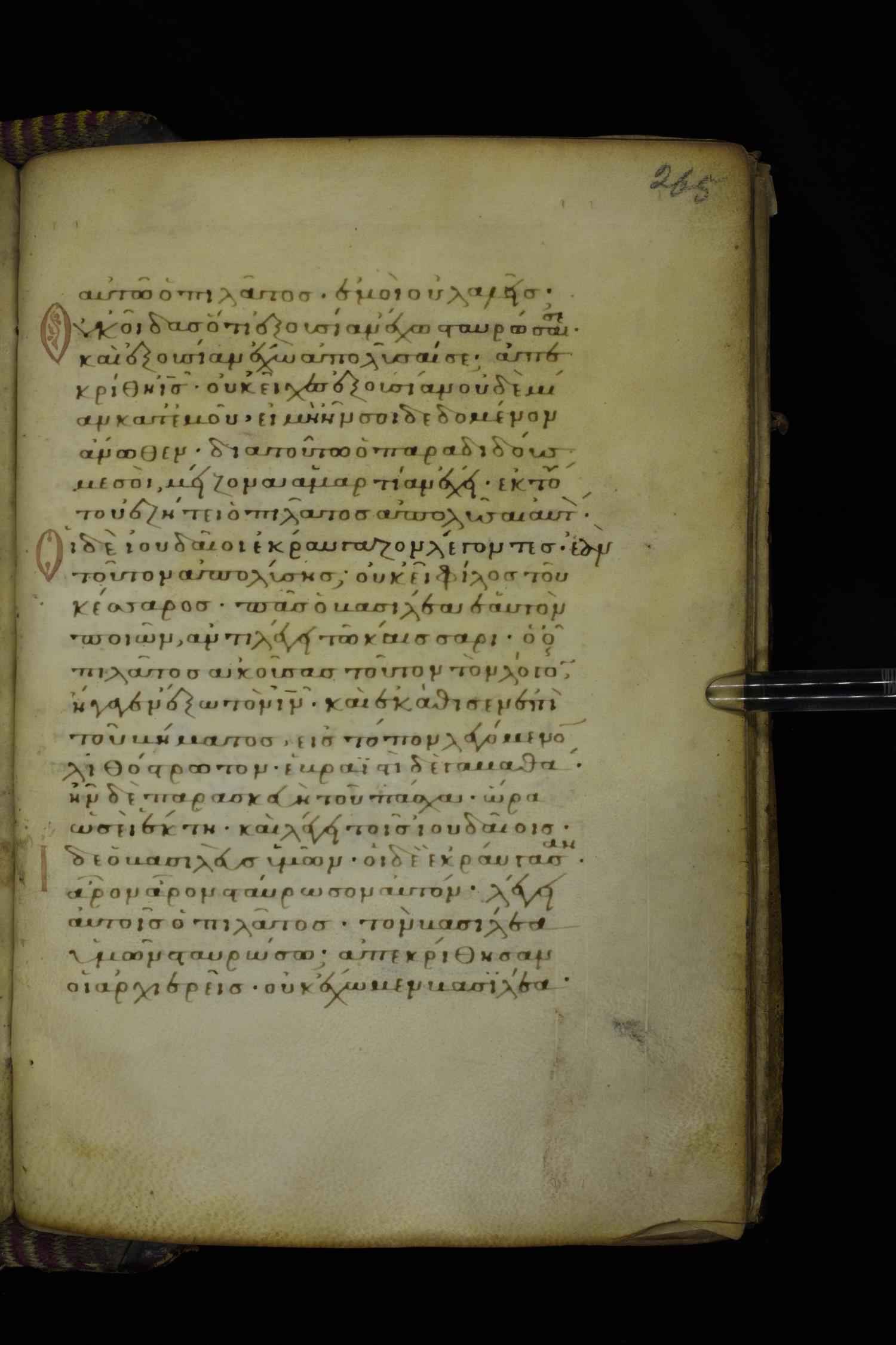 Fourteenth century minuscule (dated to 1321) of the Gospels on parchment; 290 leaves, 1 column, 21-23 lines per column. Images were taken at the National Library of Greece in Athens.